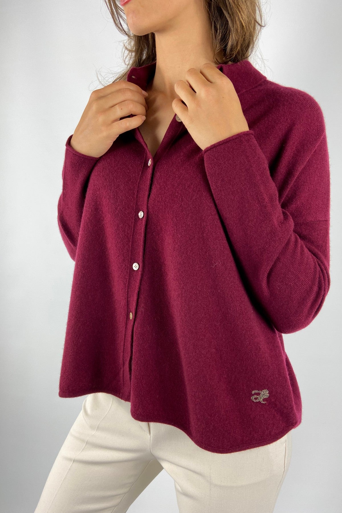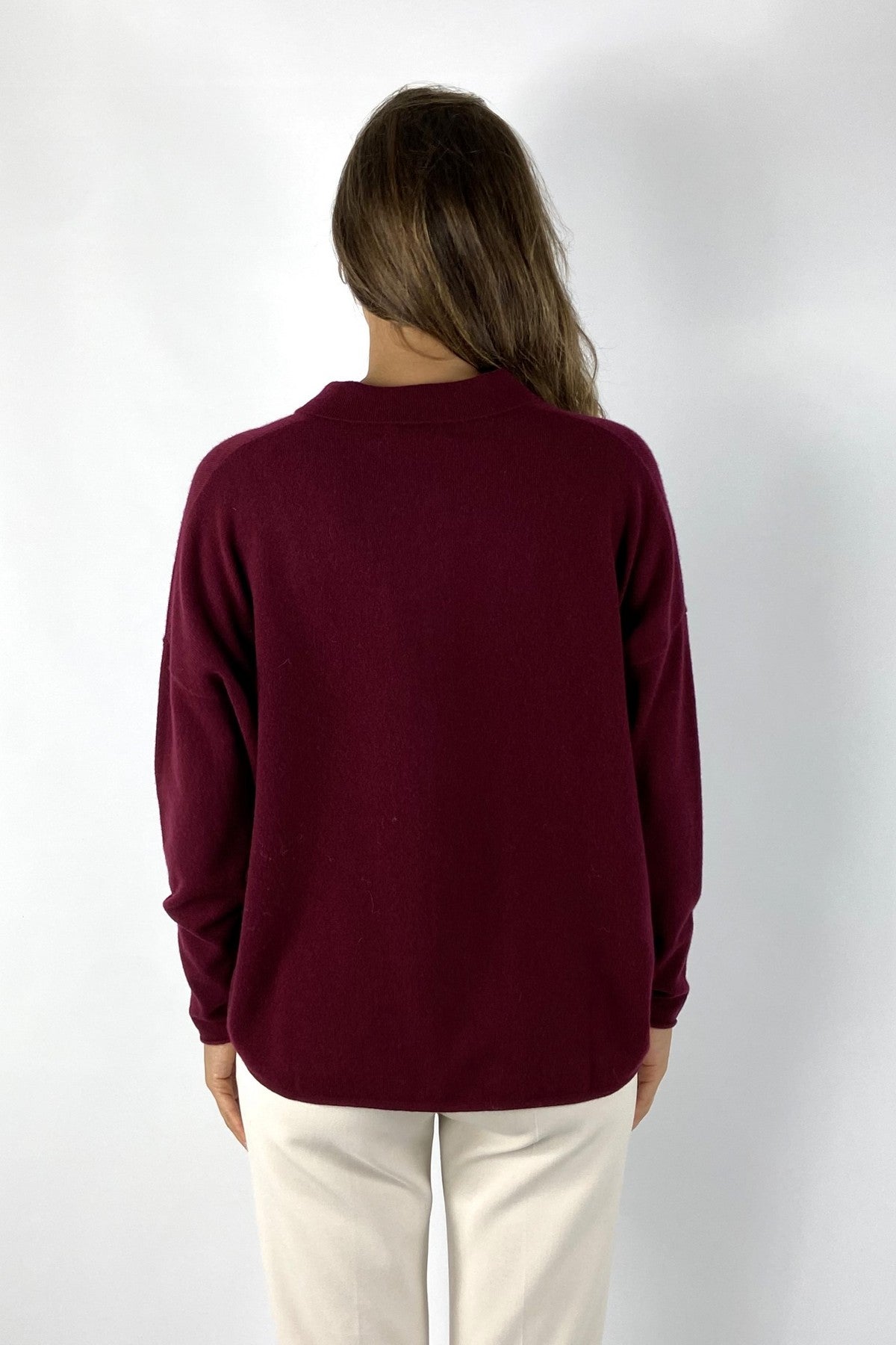 Losse cashmere cardigan met lange mouwen en polokraag in chiantirood van Hemisphere.