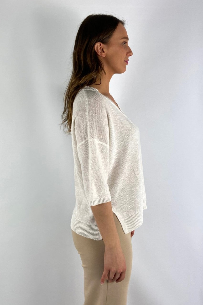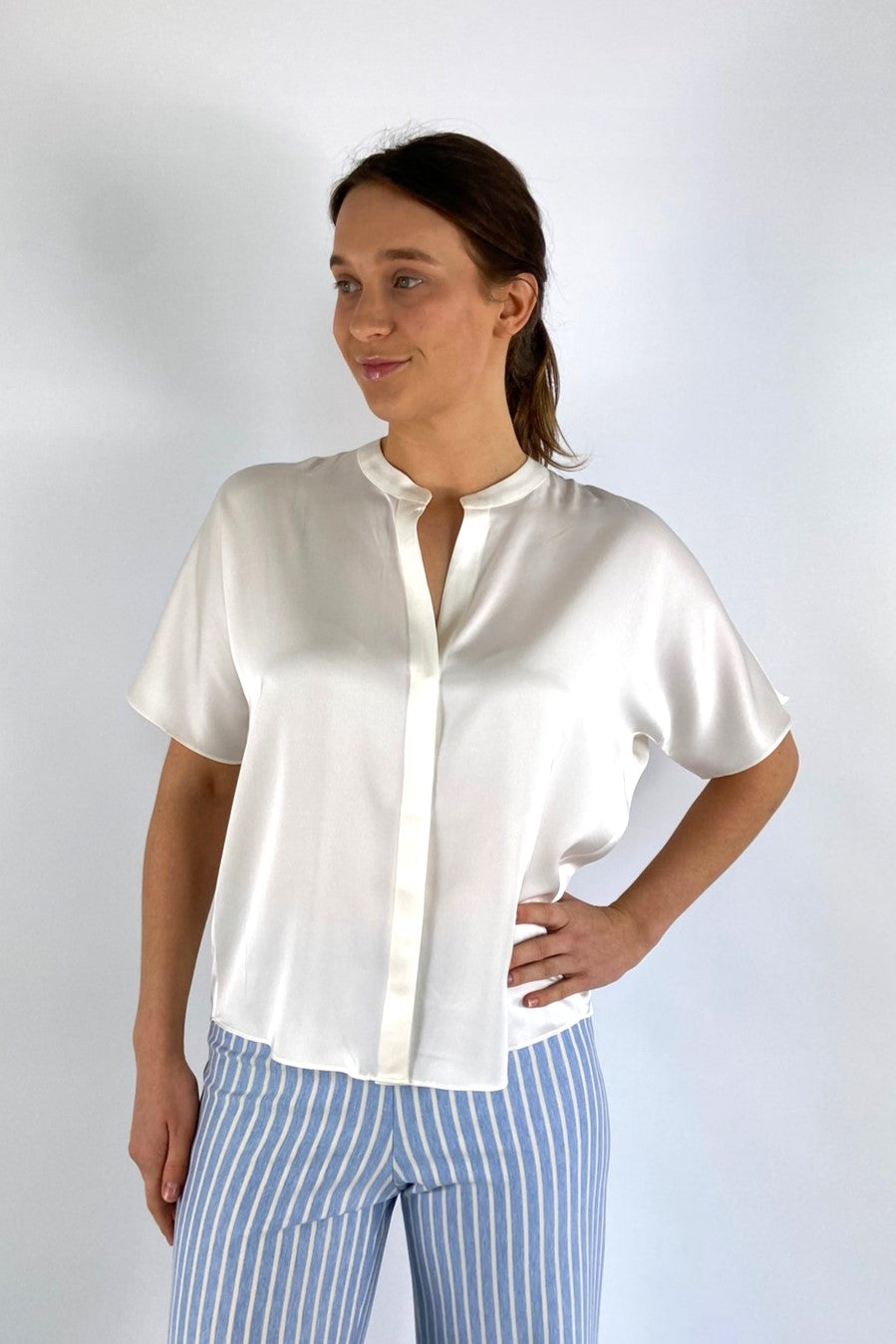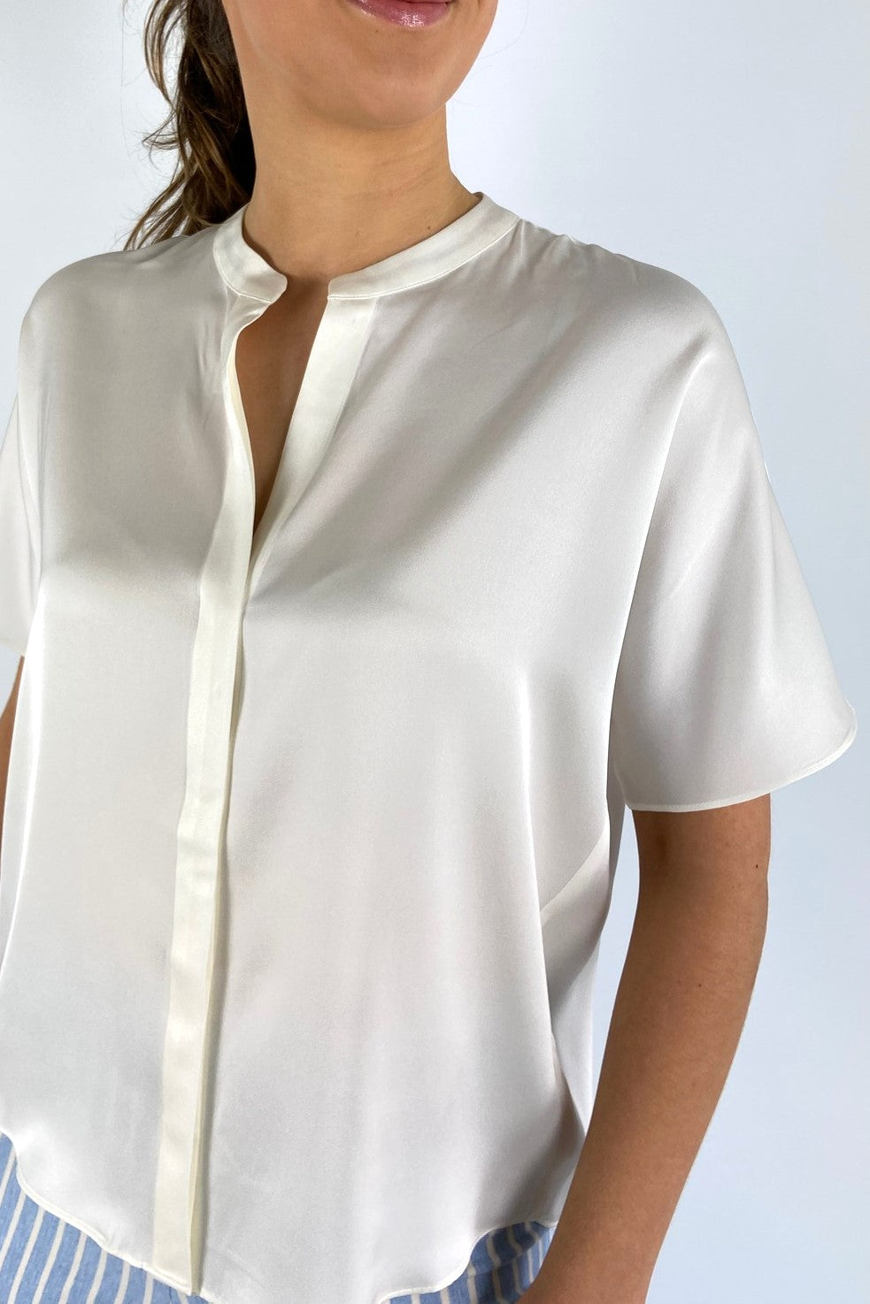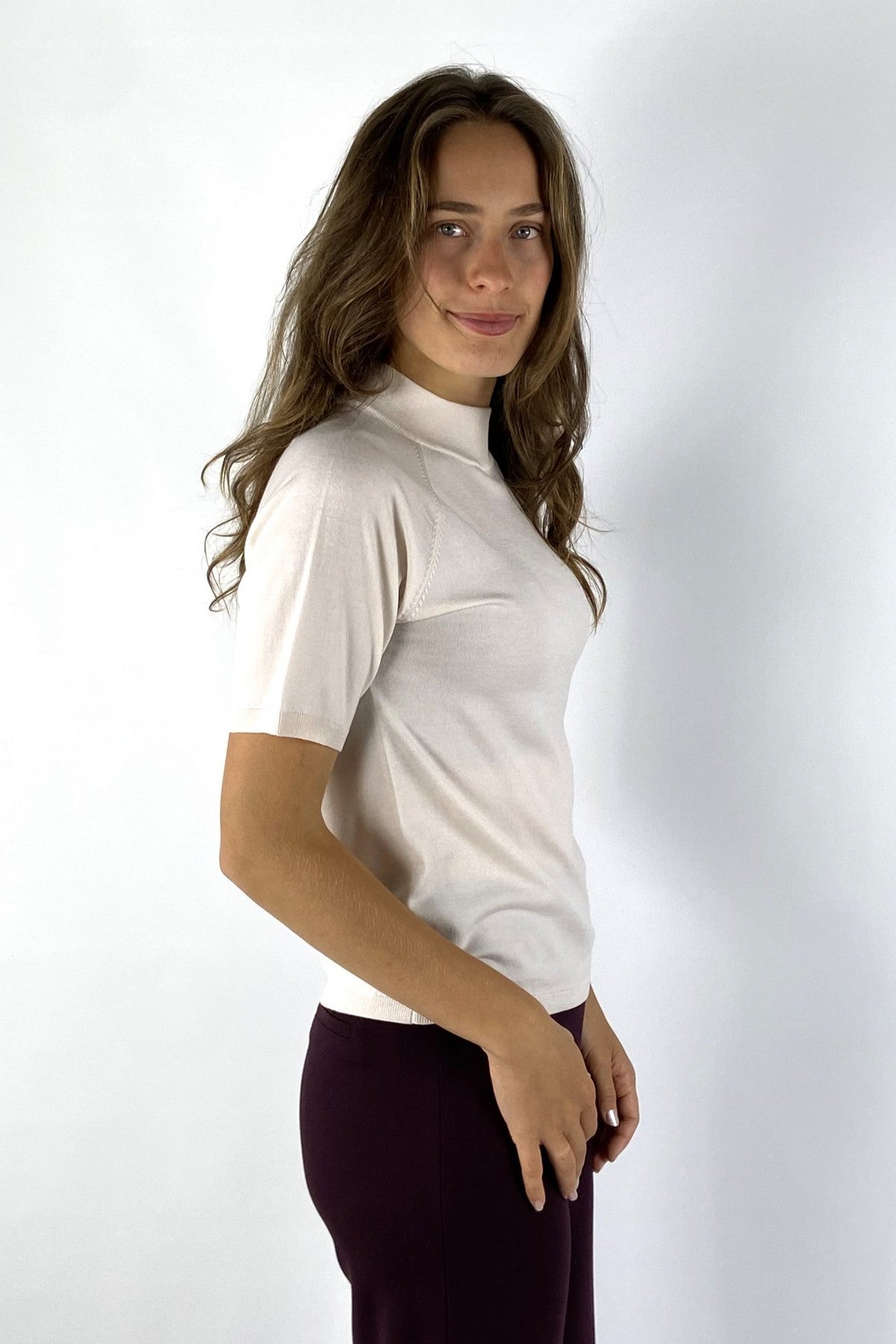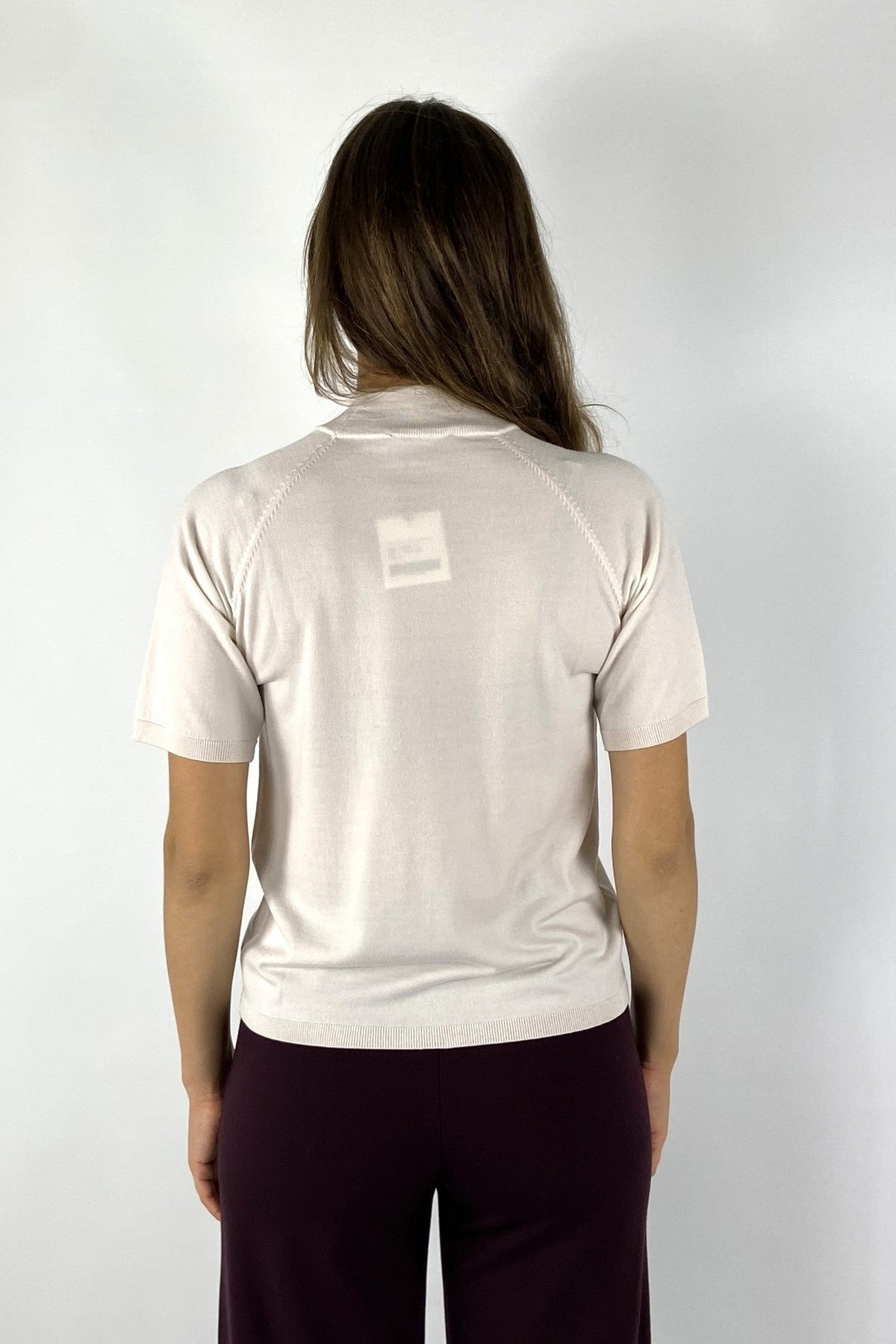 Truitje in gebroken wit met opstaande kraag en korte mouwen van Hemisphere.