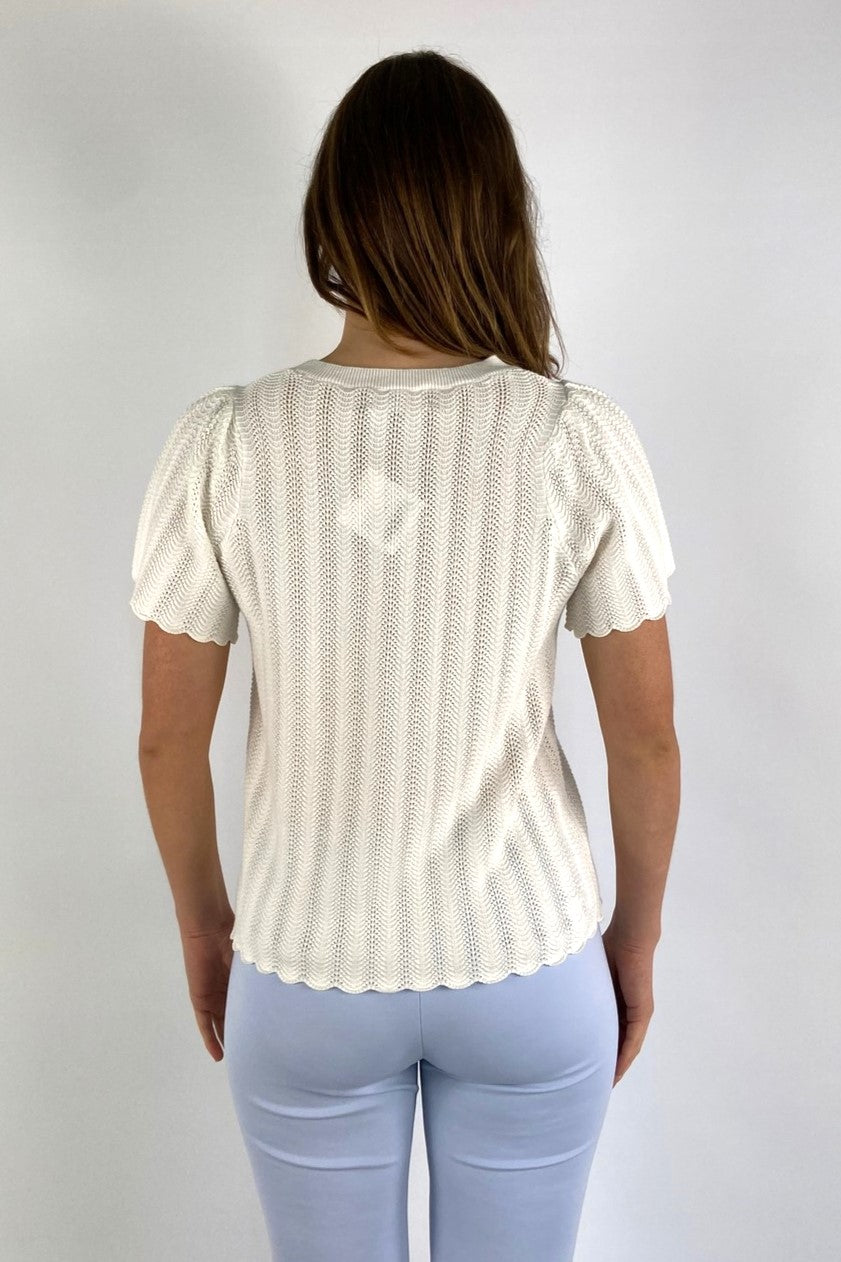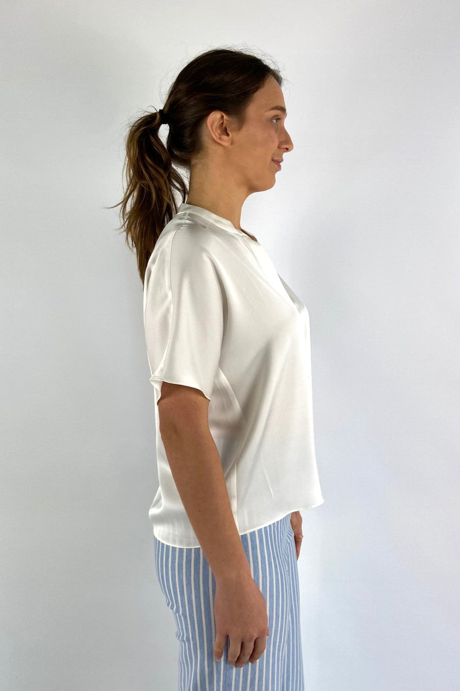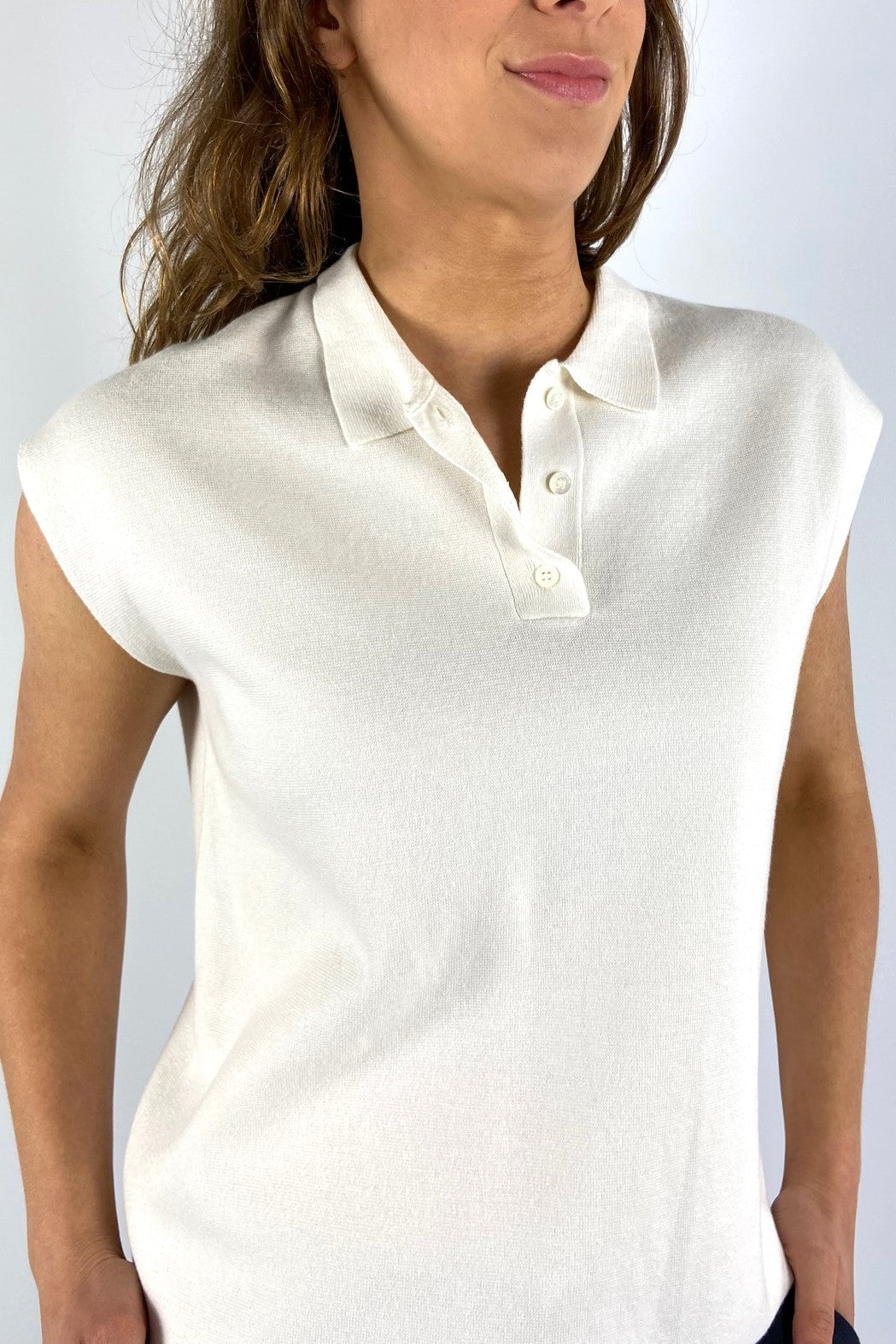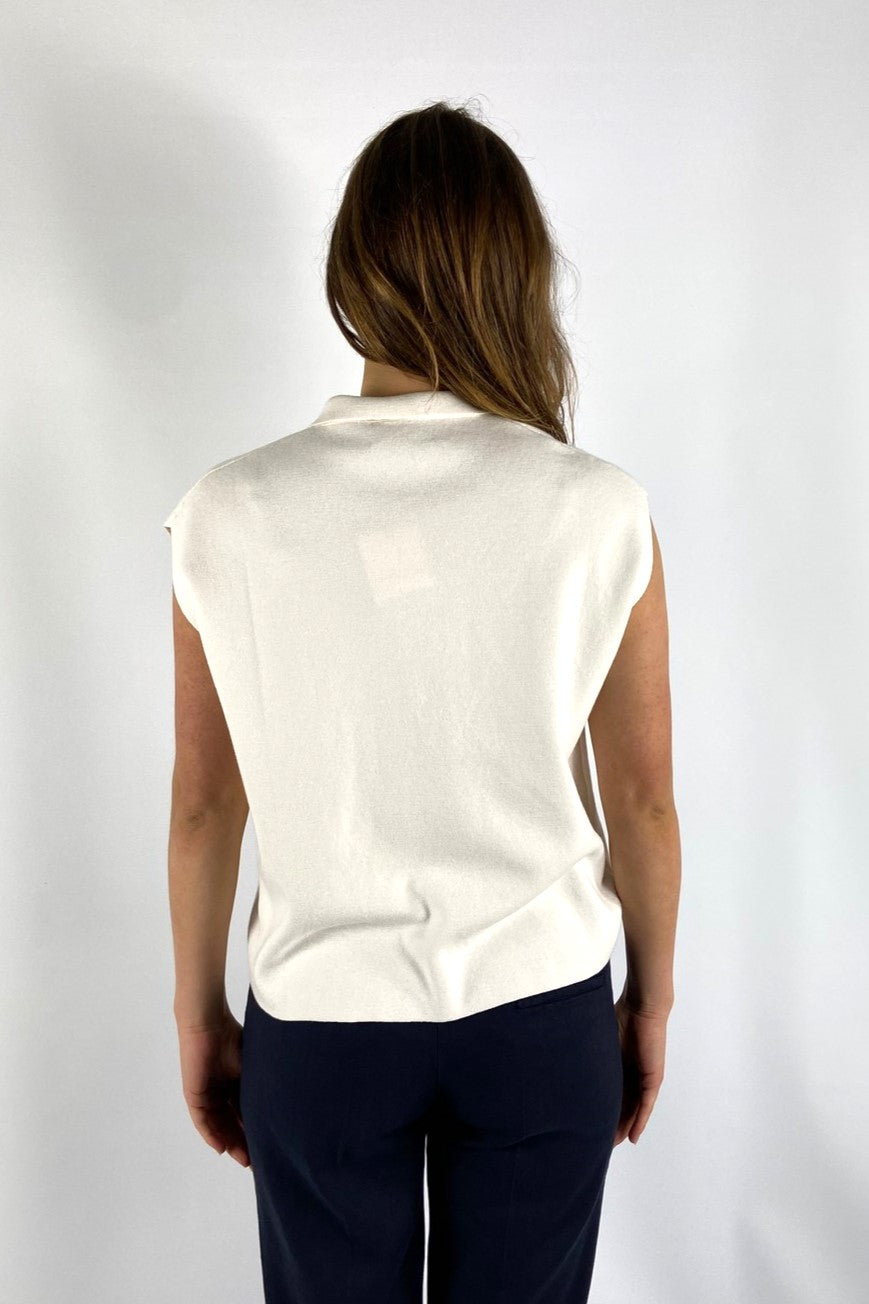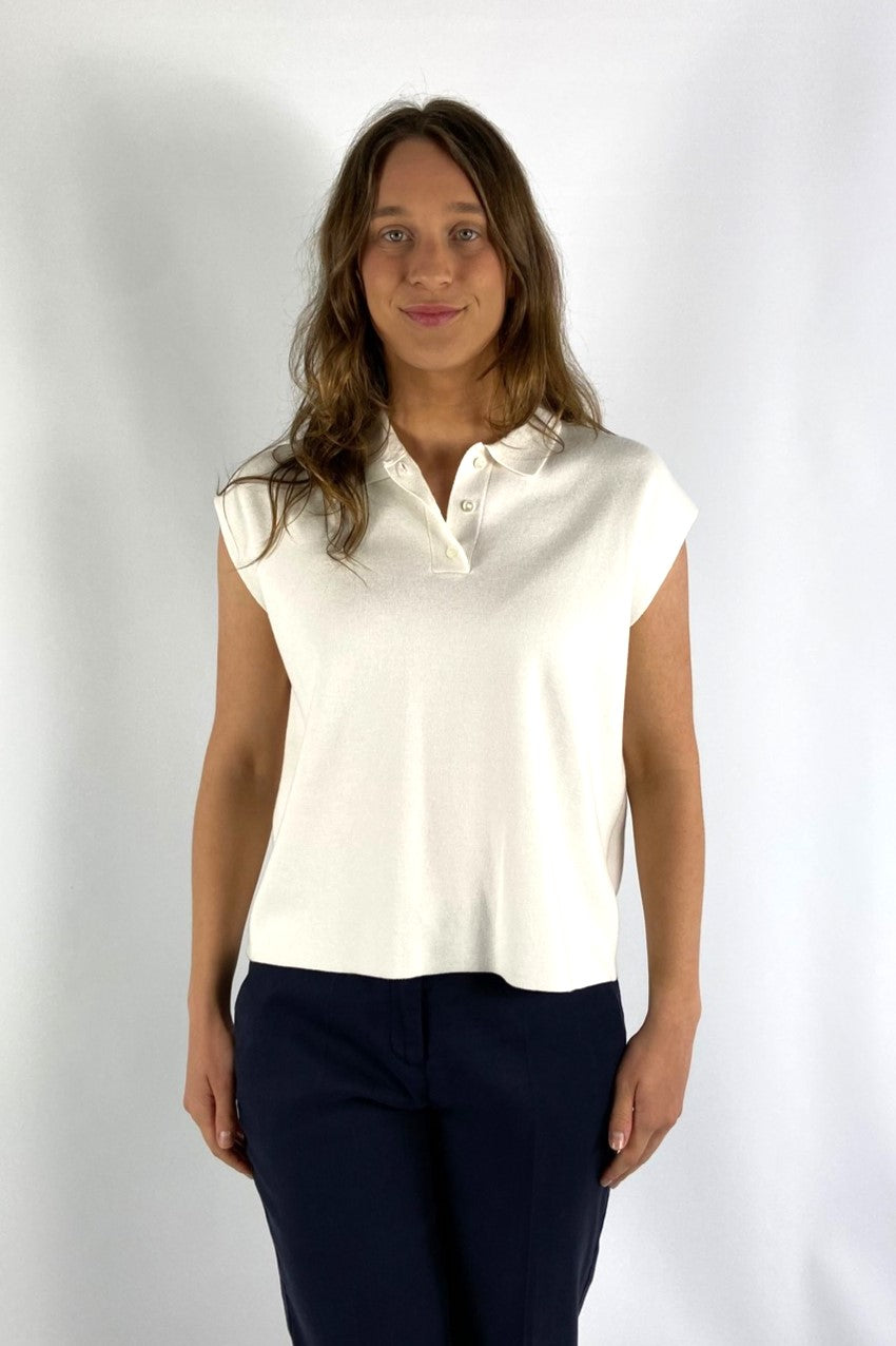 Truitje in gebroken wit met opstaande kraag en korte mouwen van Hemisphere.