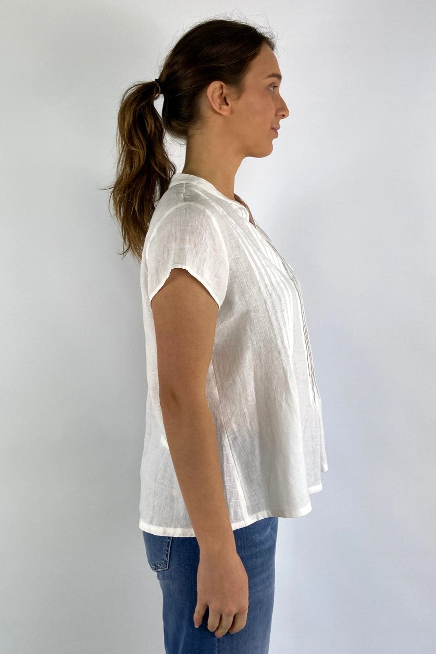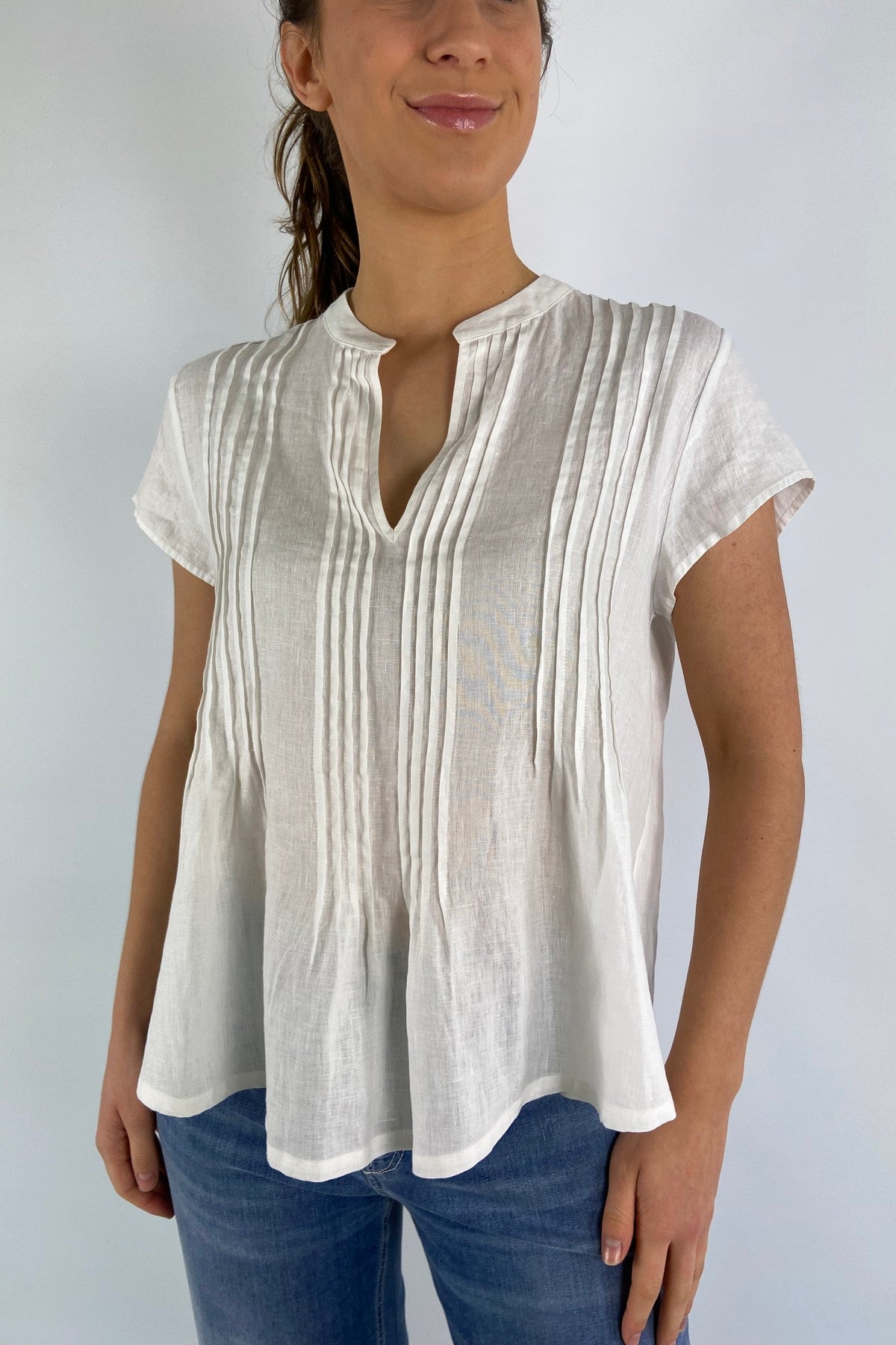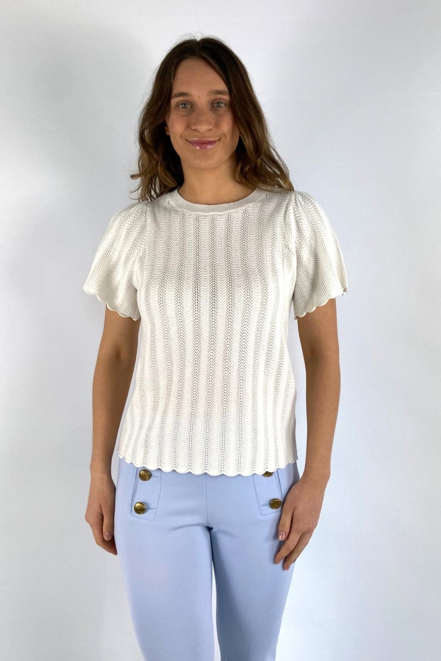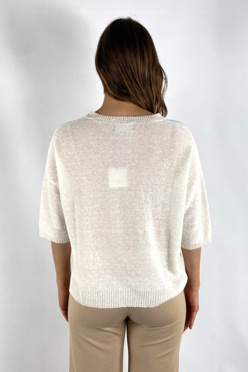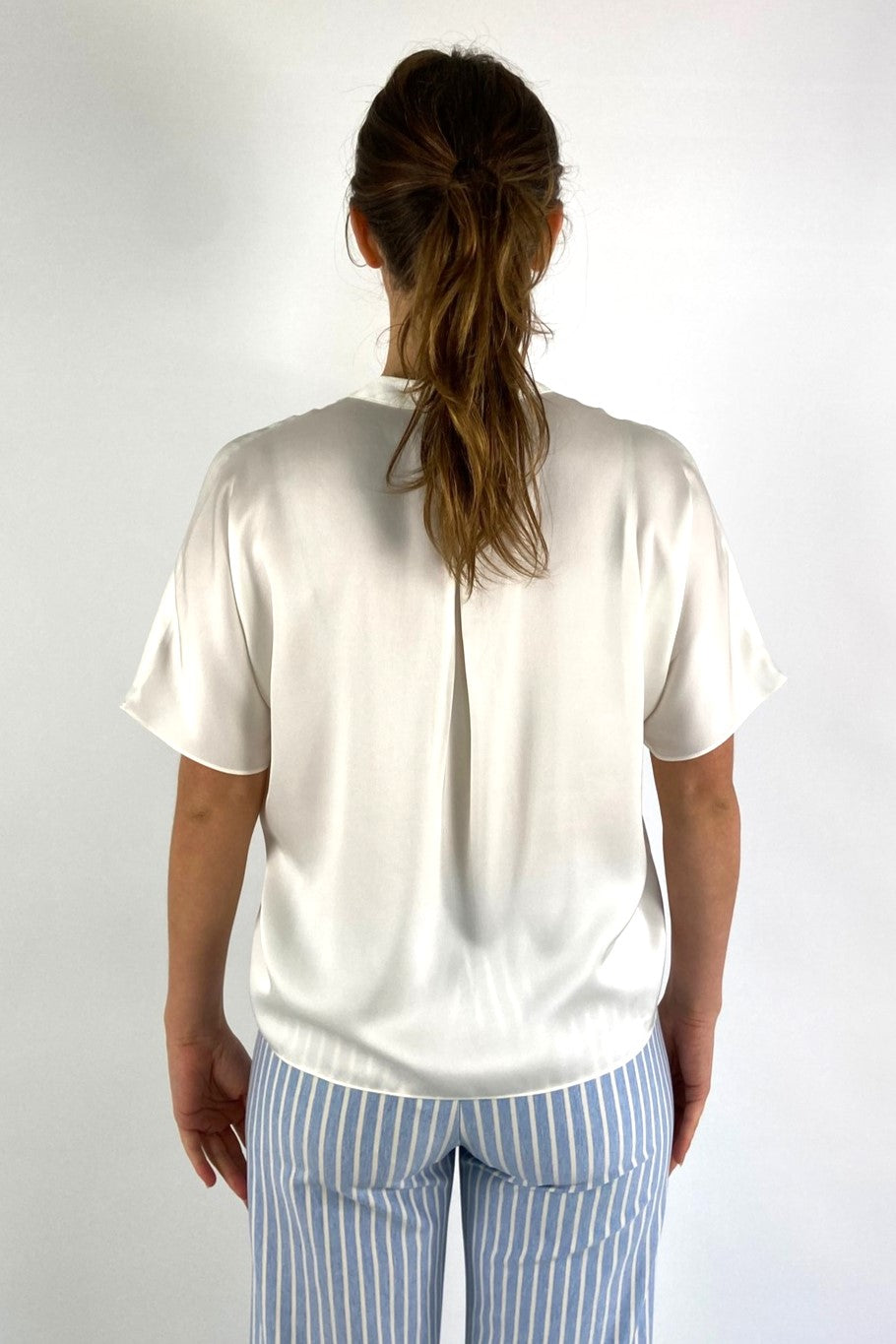 Truitje in gebroken wit met opstaande kraag en korte mouwen van Hemisphere.