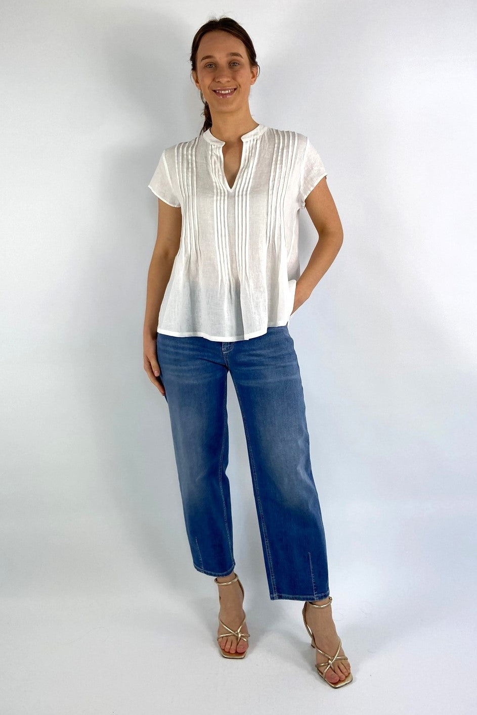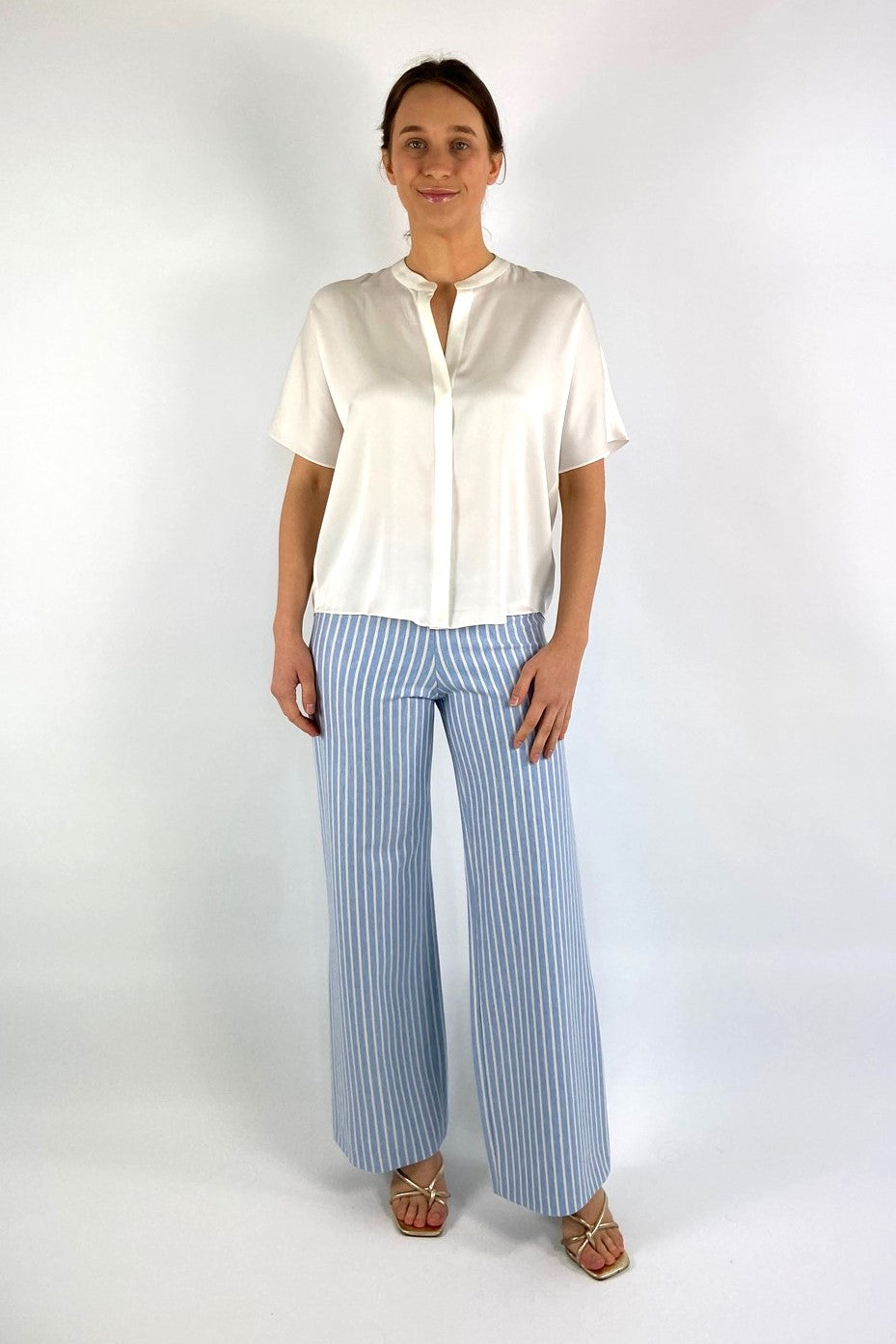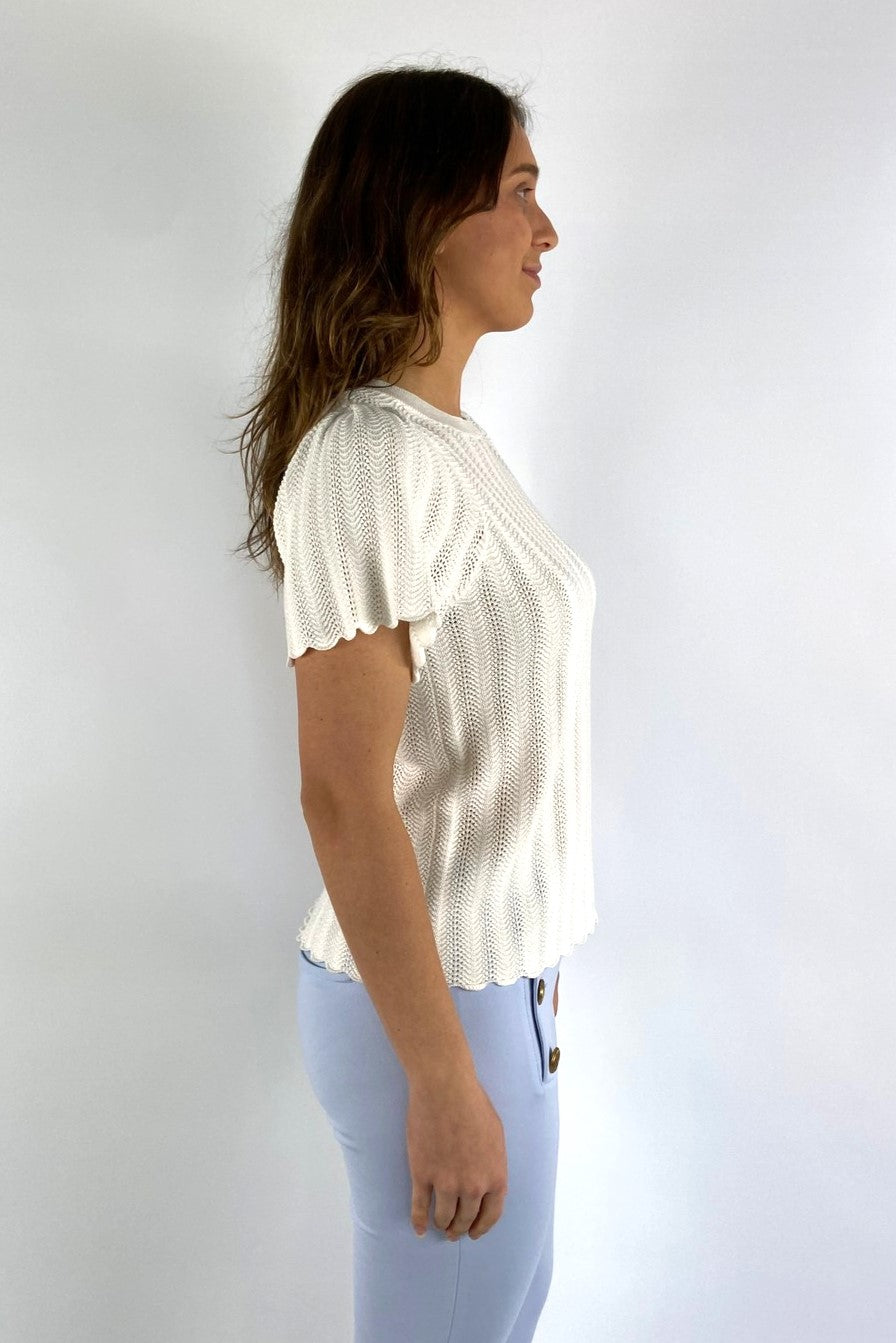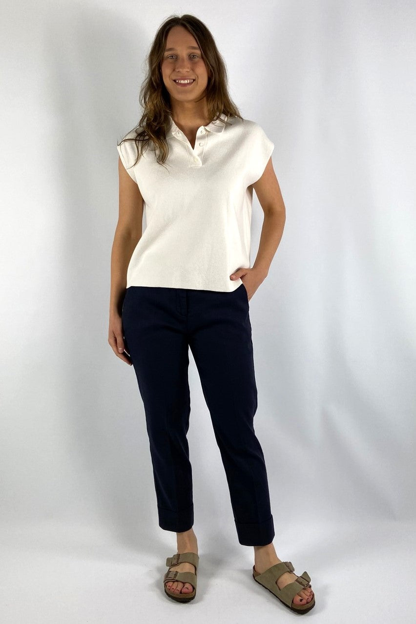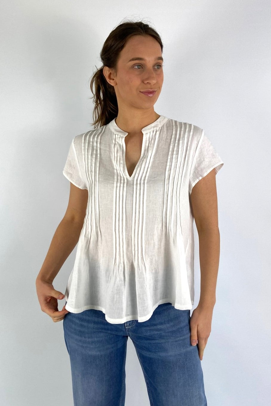 Truitje in gebroken wit met opstaande kraag en korte mouwen van Hemisphere.
