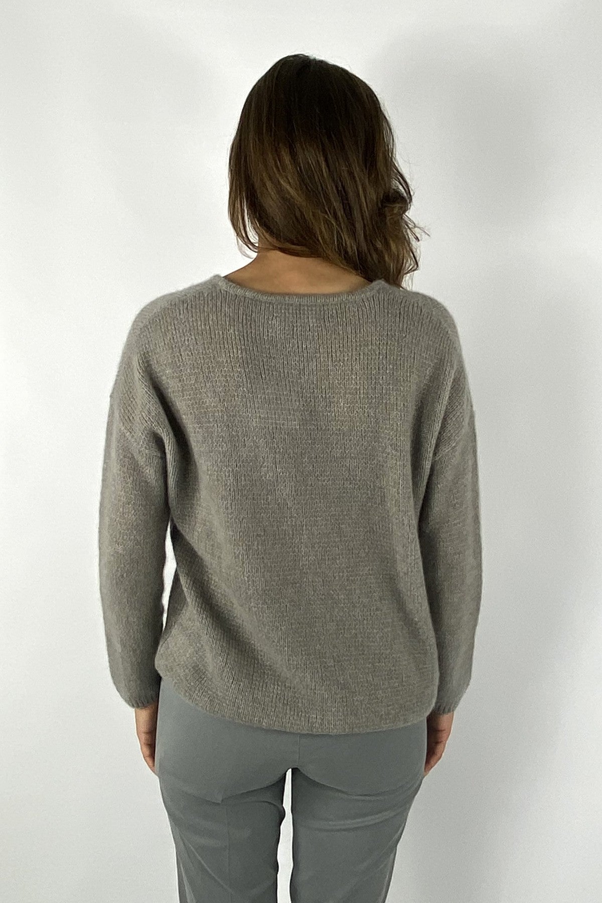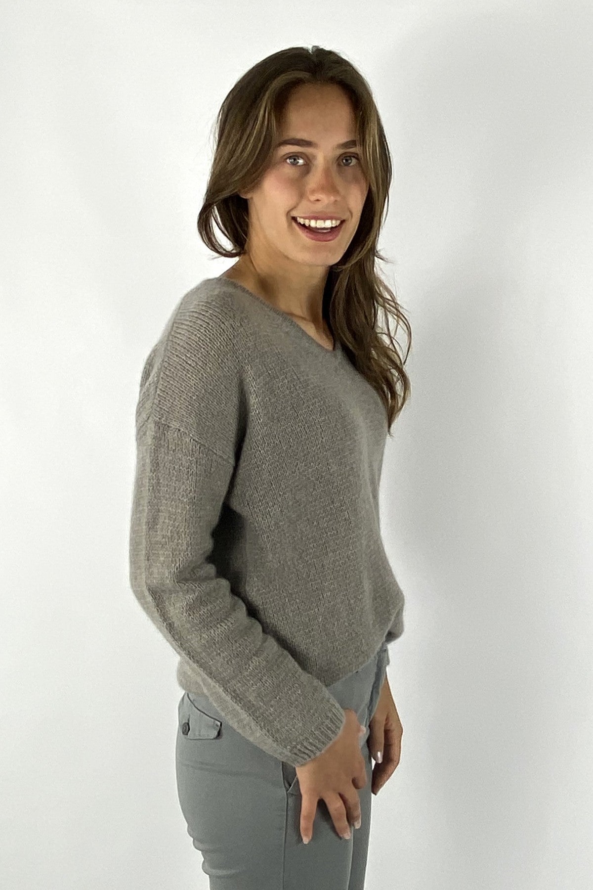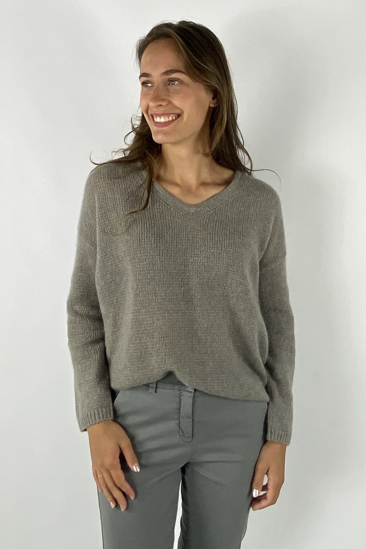 Gebreide damespullover van Hemisphere in een mix van kasjmier en zijde, los model met V-hals en ribboorden – tijdloos comfort en luxe.