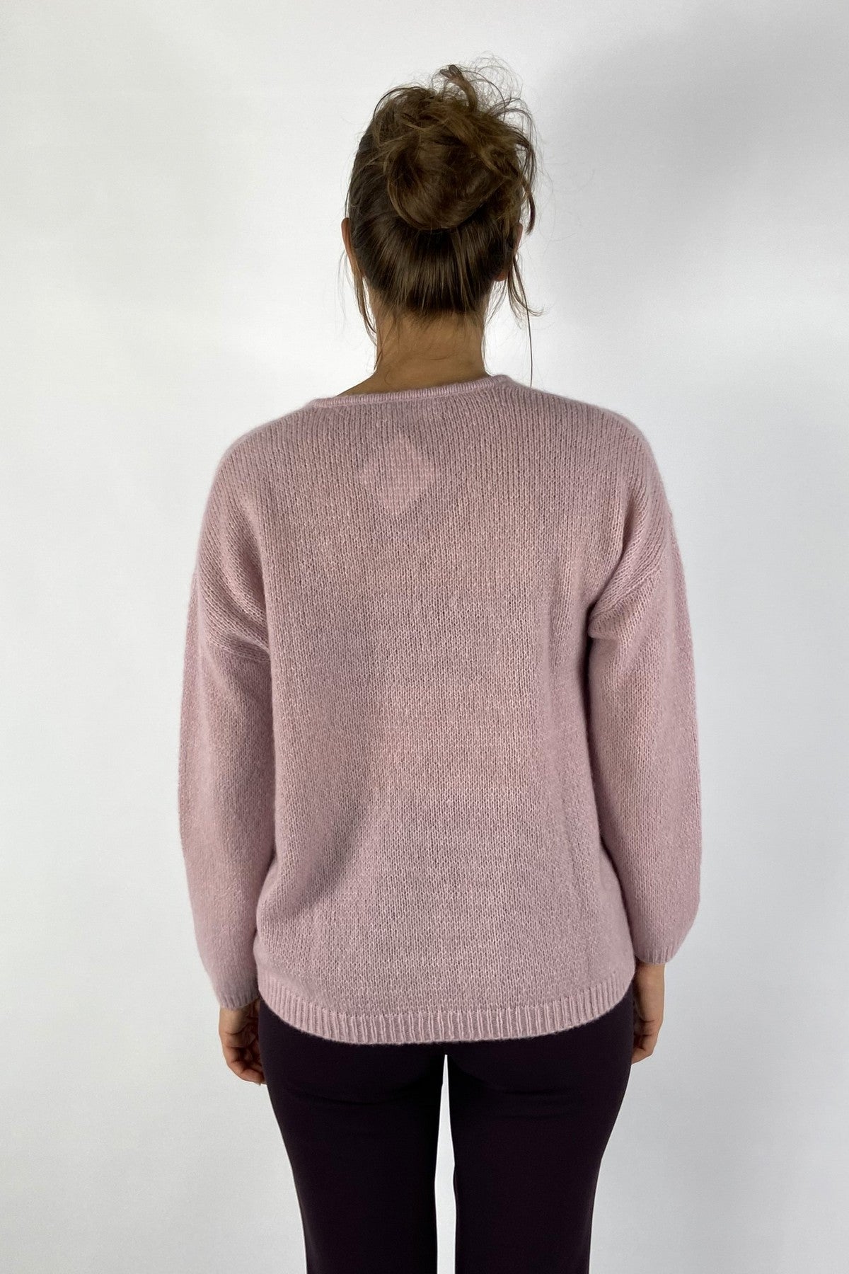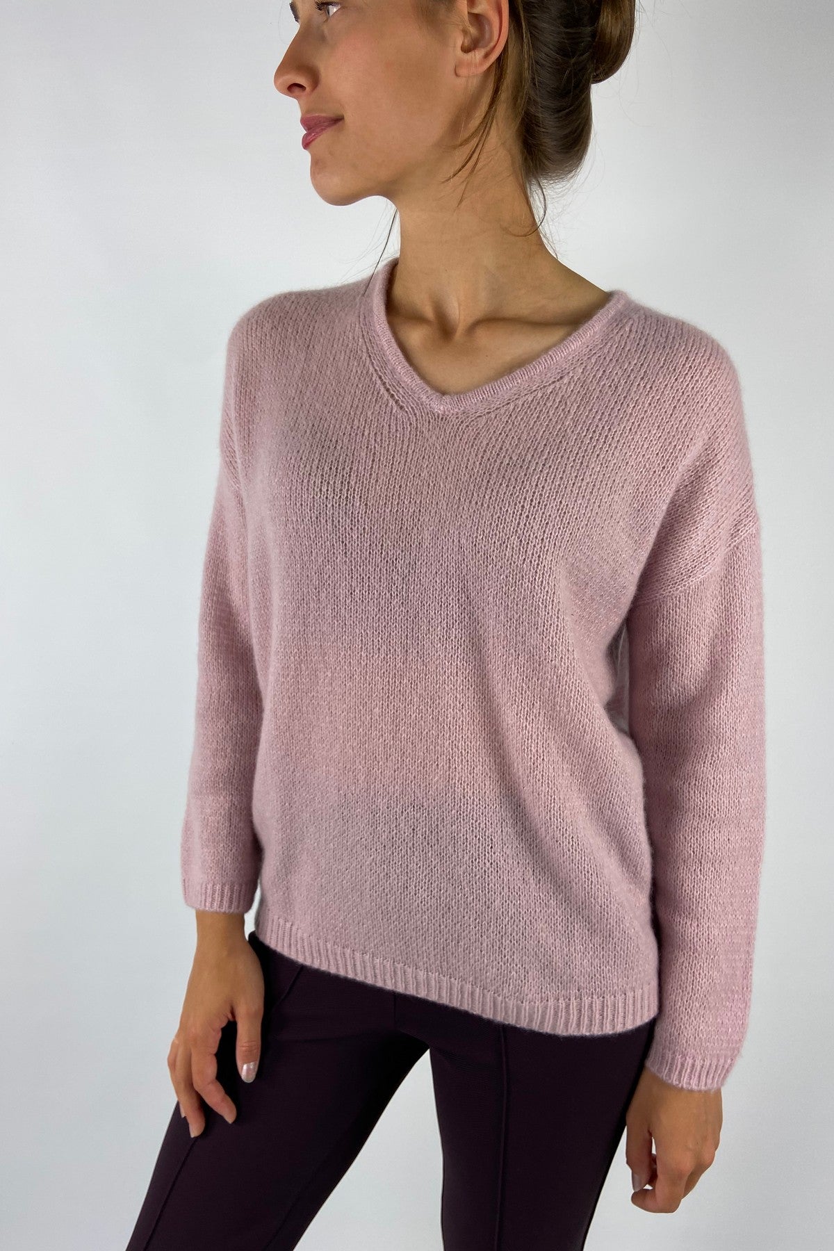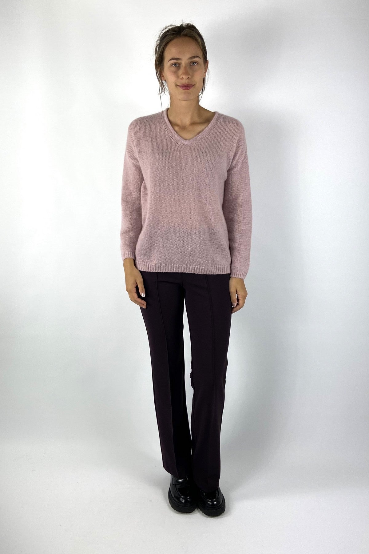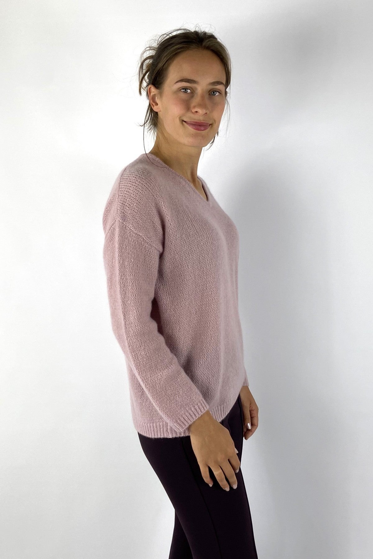 Gebreide damespullover van Hemisphere in een mix van kasjmier en zijde, los model met V-hals en ribboorden – tijdloos comfort en luxe.