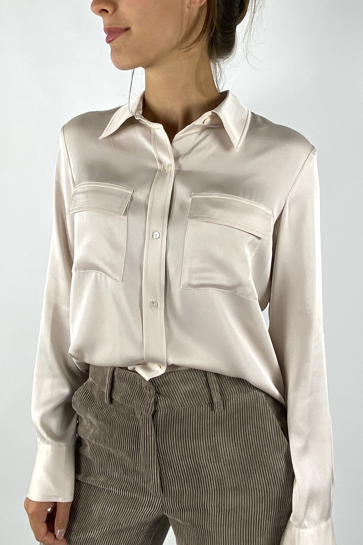 Blouse van Hemiphere met 2 zakjes en lange mouwen in een luxueuze zijdestretch kwaliteit.
