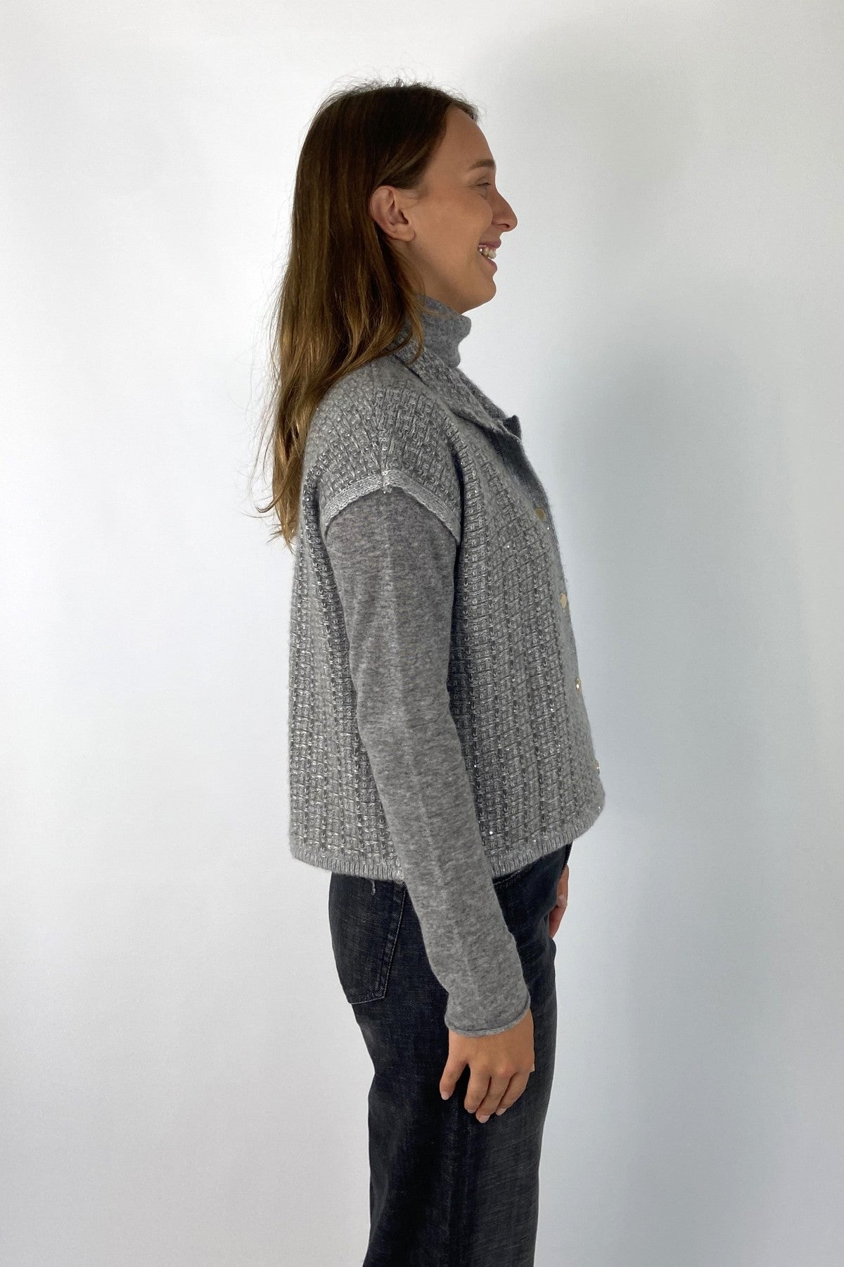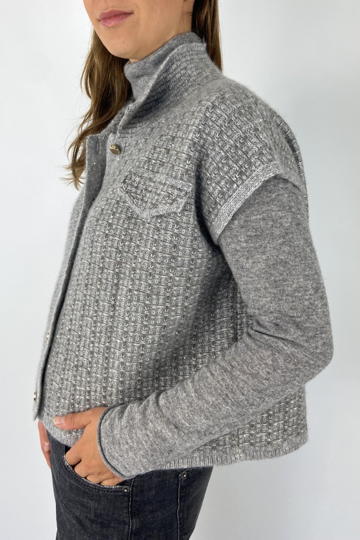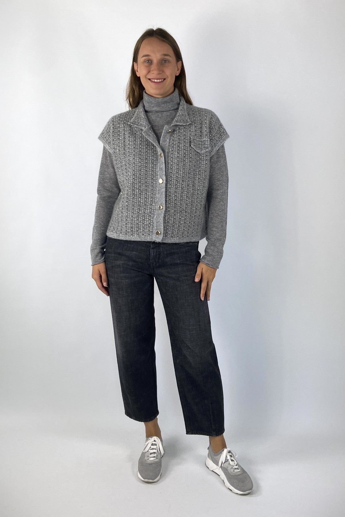 Elegant damesvest in kasjmiermix met gouden knopen. Kleur is grijs.