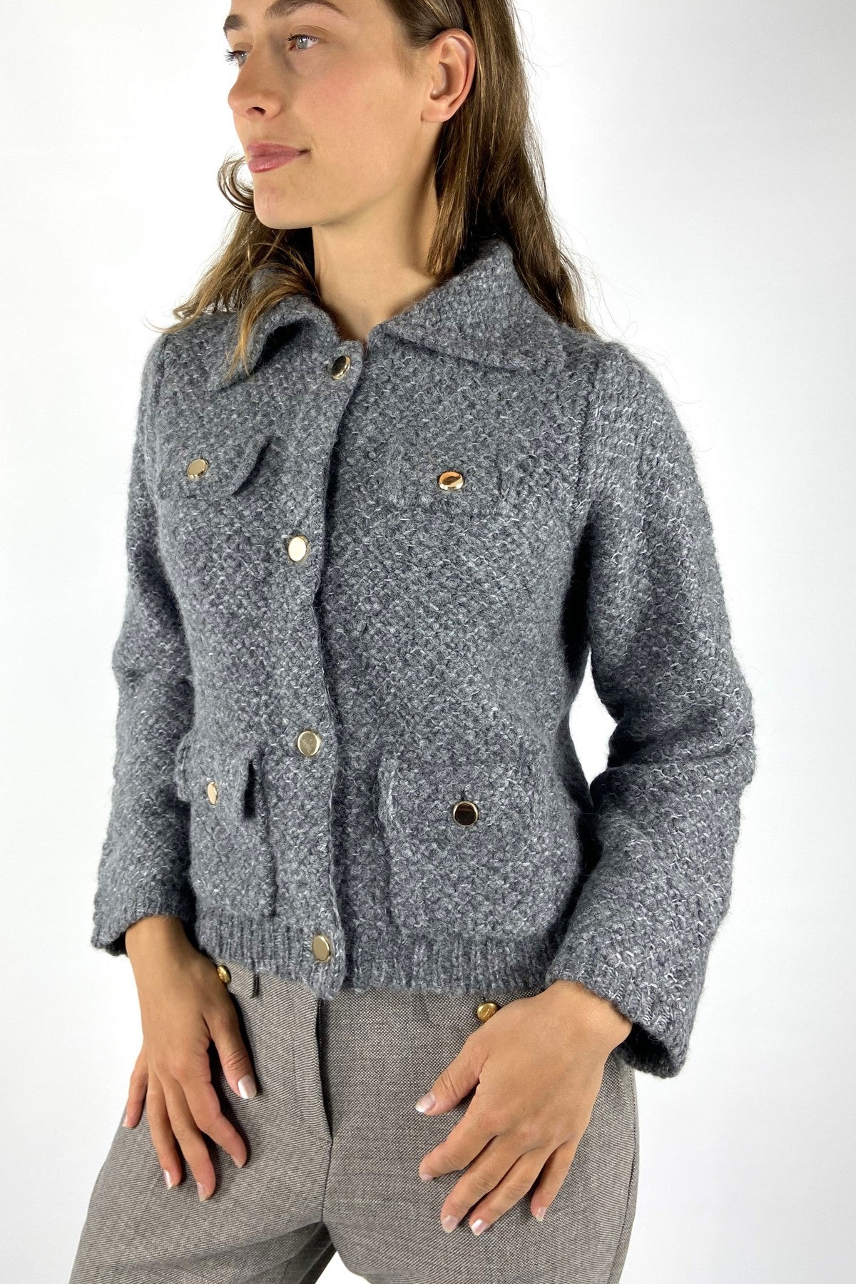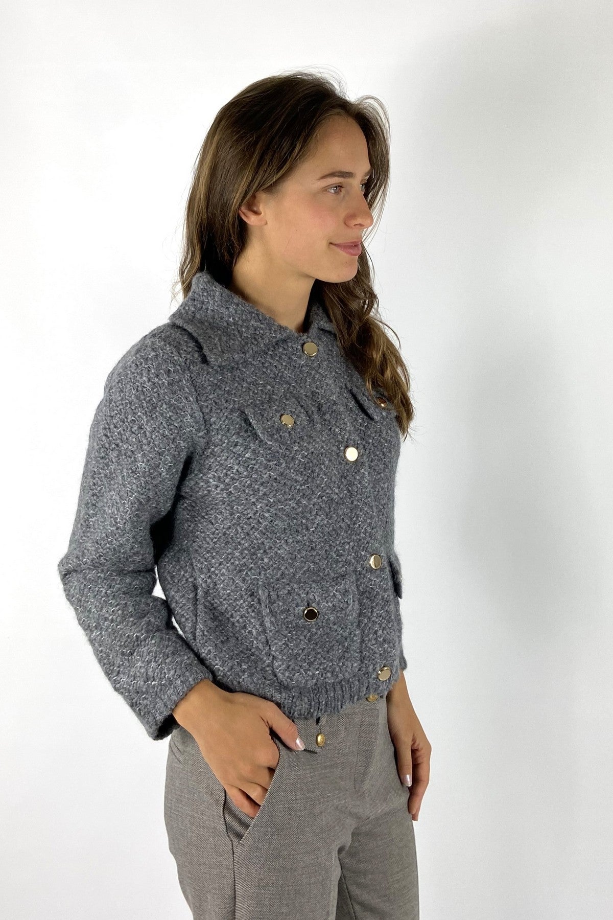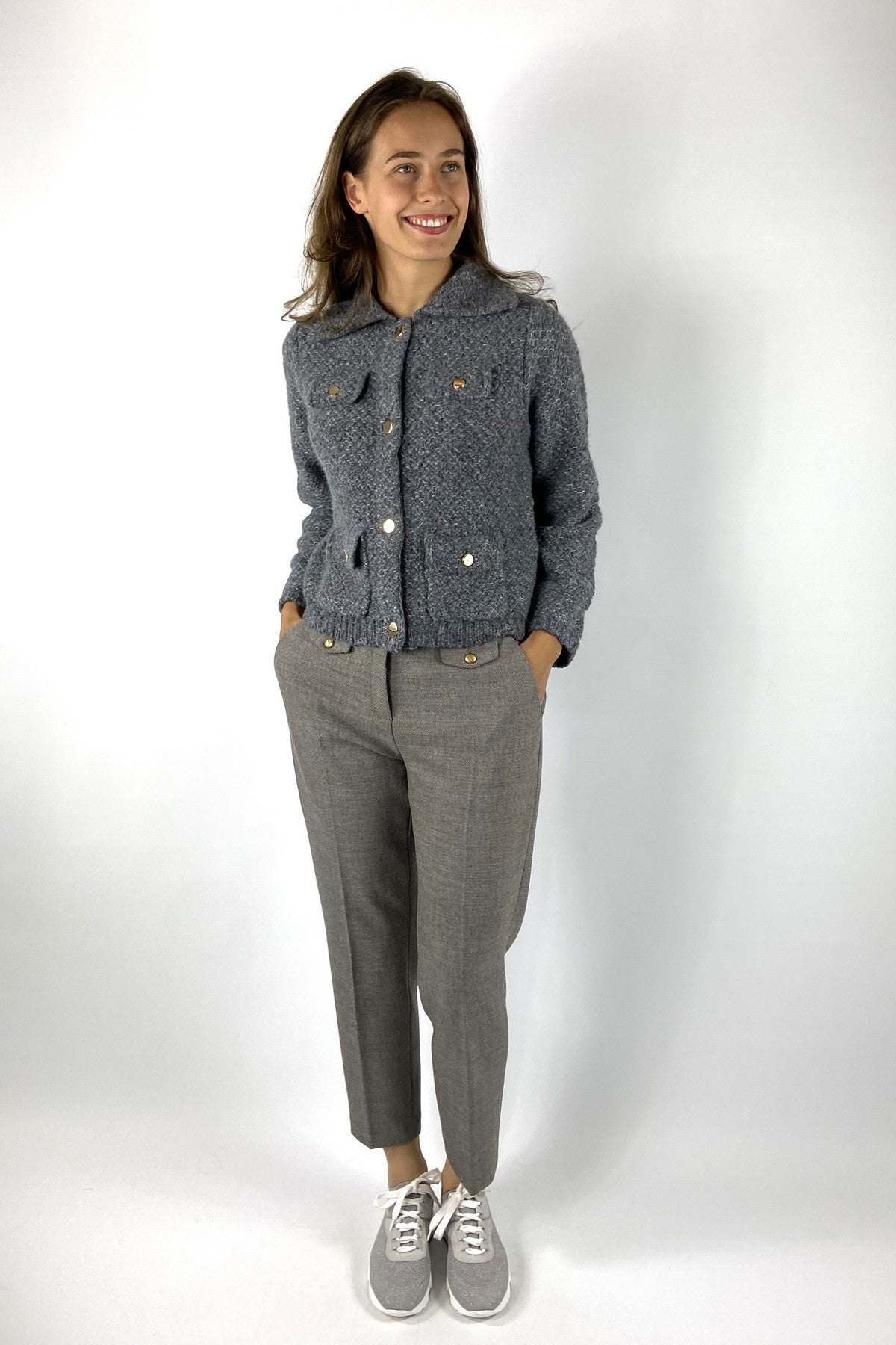 Elegant damesvest in kasjmiermix met gouden knopen. Kleur is grijs.