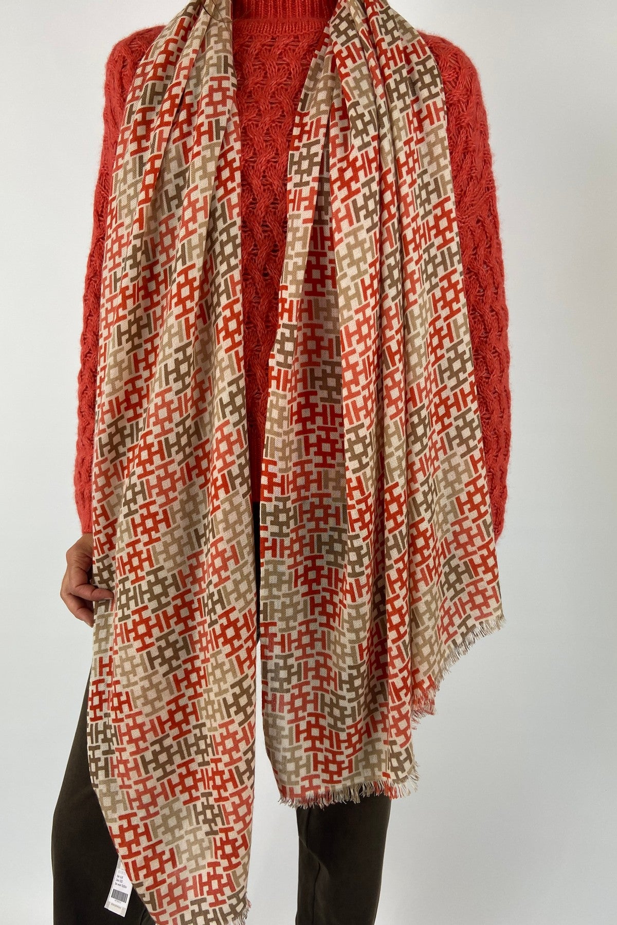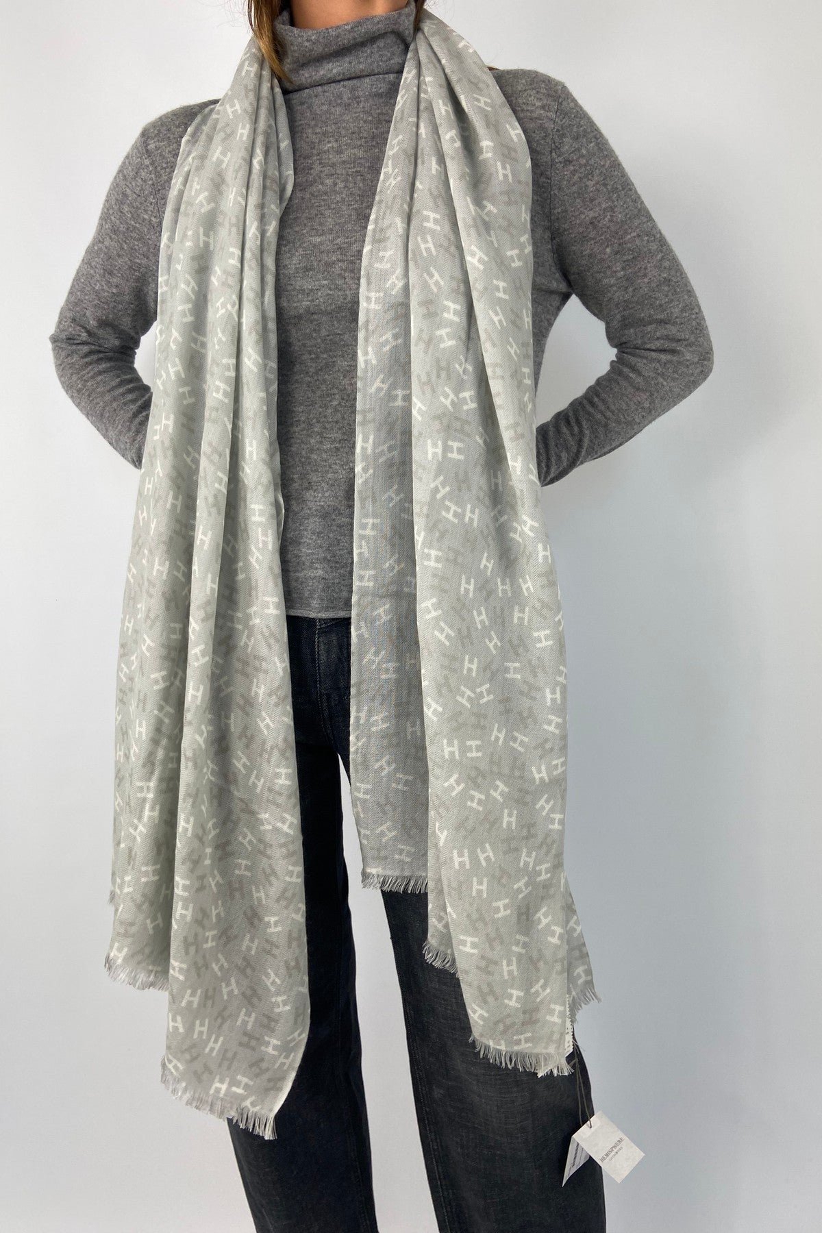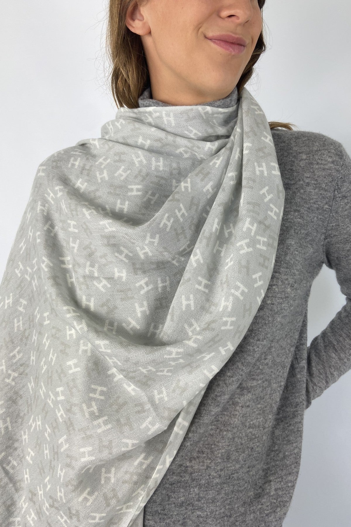 Sjaal Aliki van Hemisphere met all-over H-print in 100% cashmere.