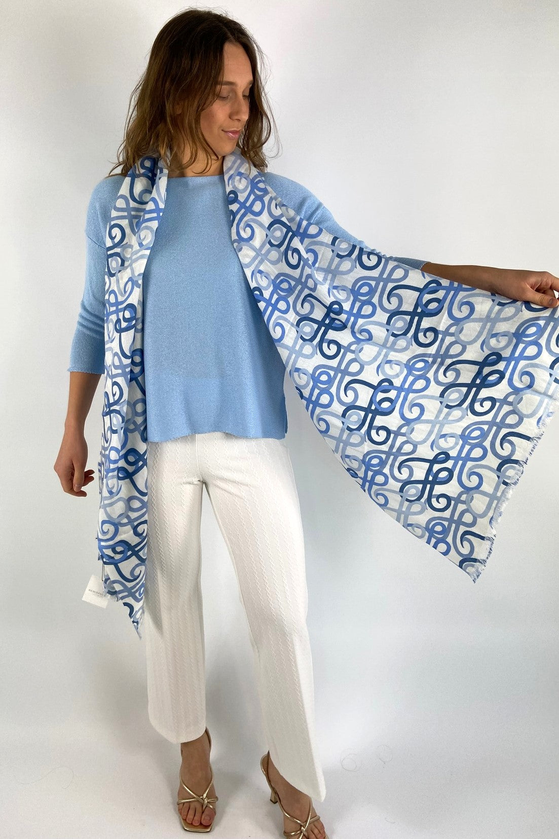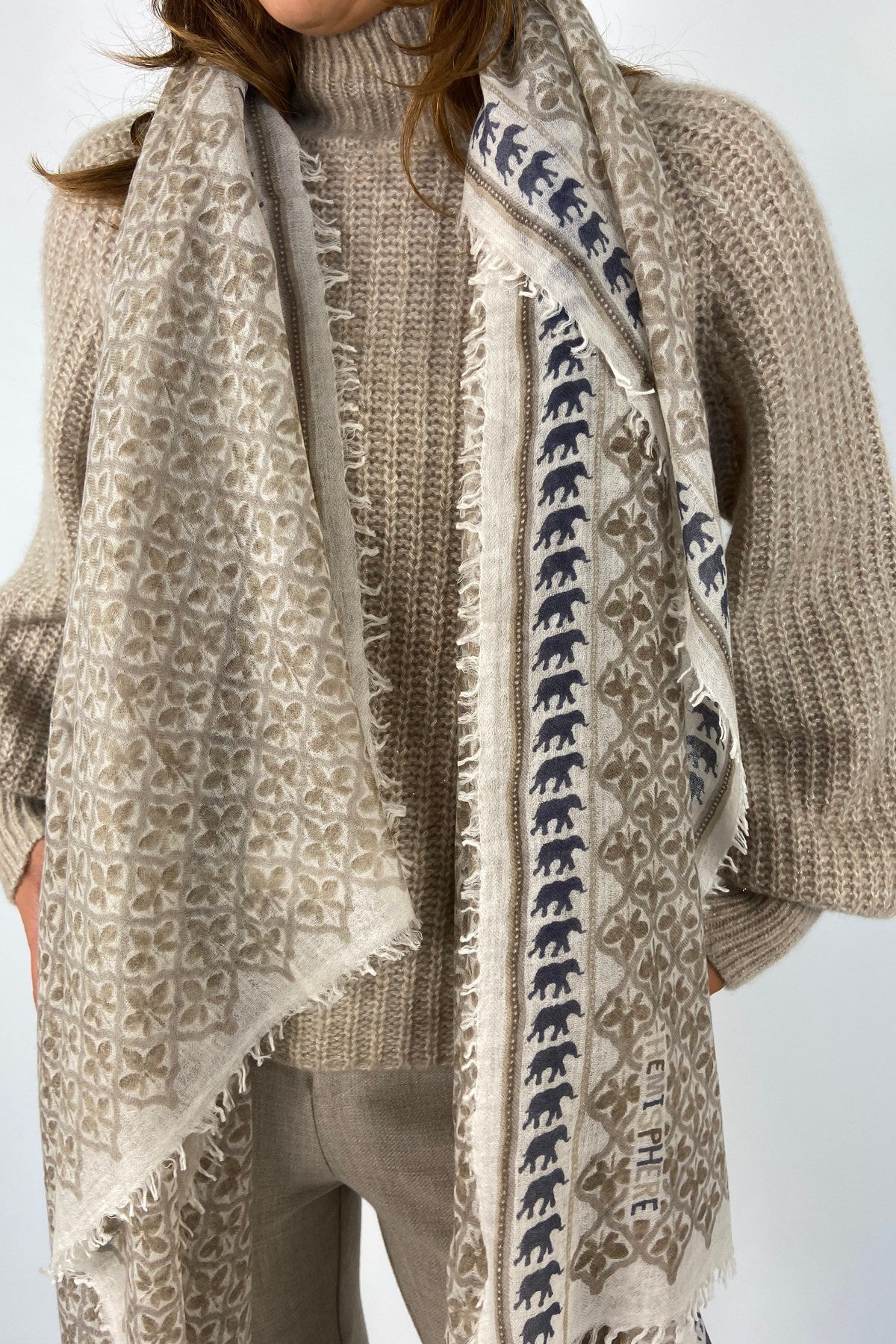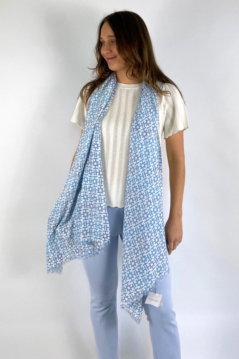 Sjaal Aliki van Hemisphere met all-over H-print in 100% cashmere.
