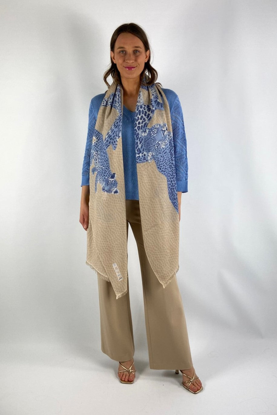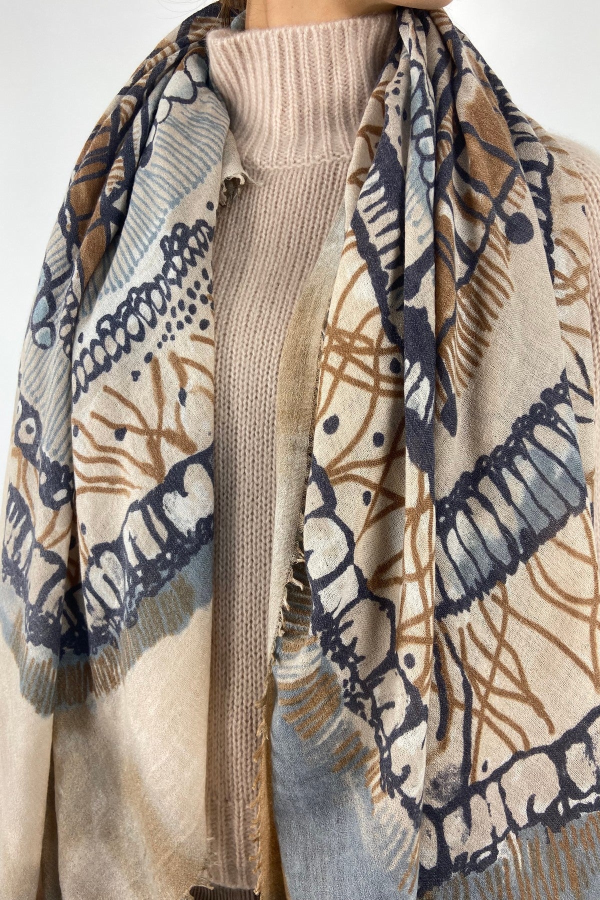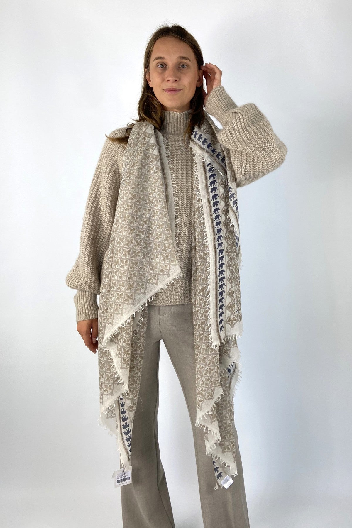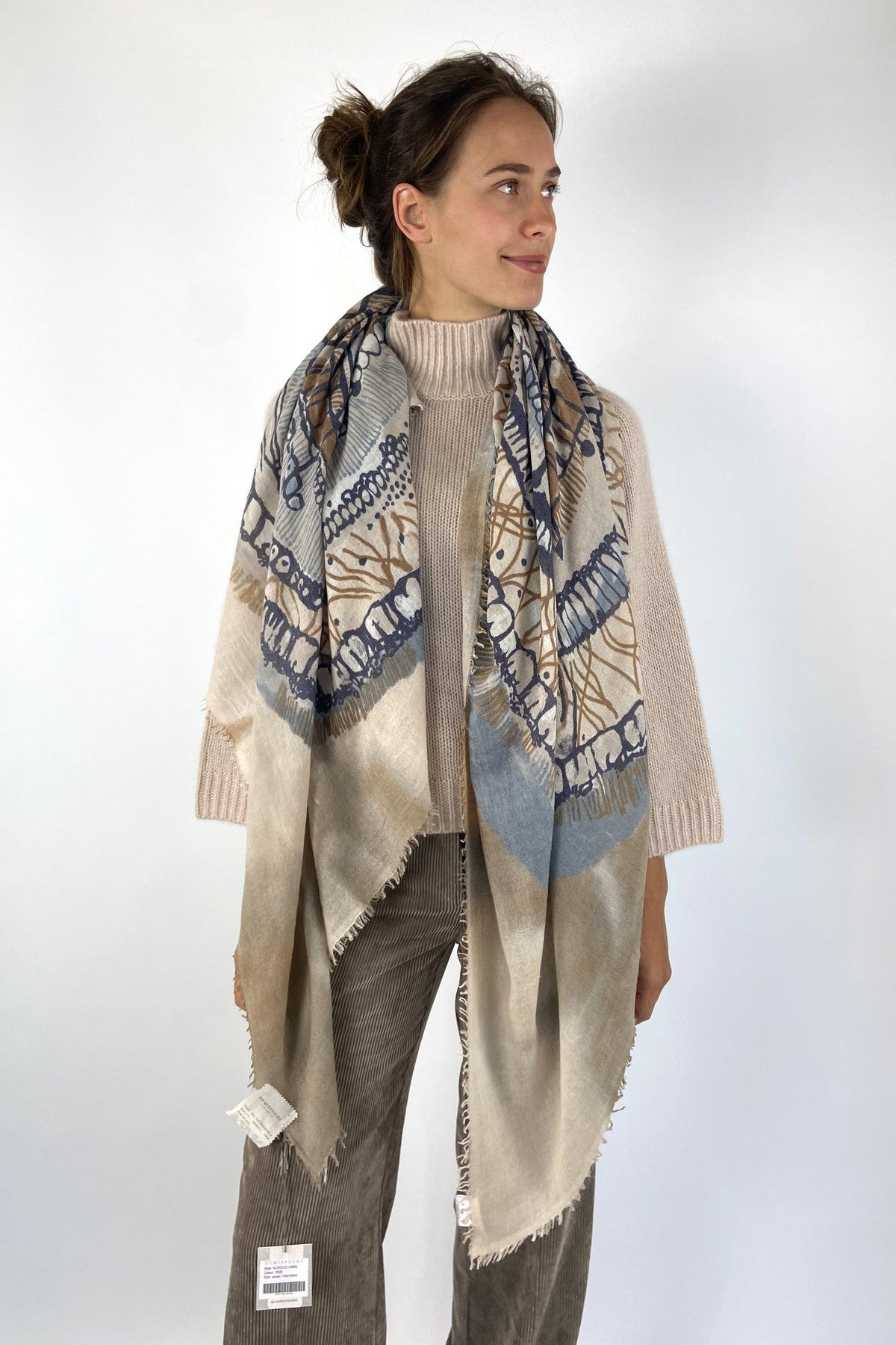 Sjaal in beige/blauwe tinten in een aangename cashmere/wolmix.