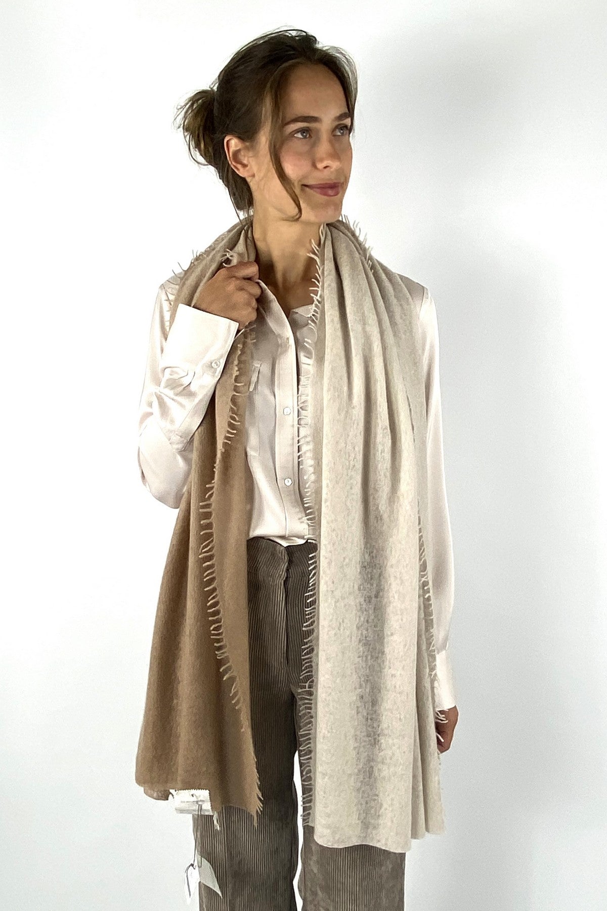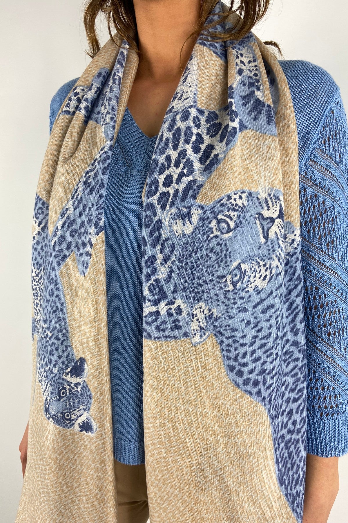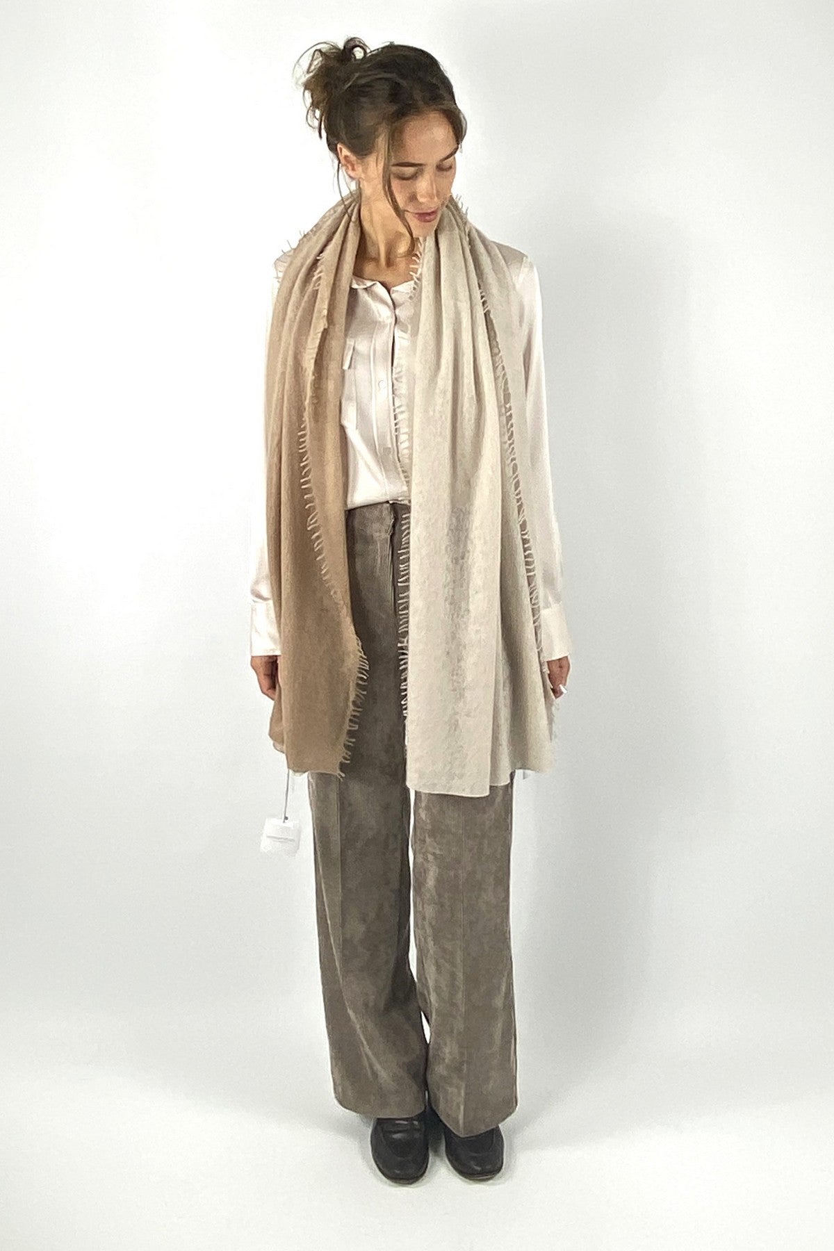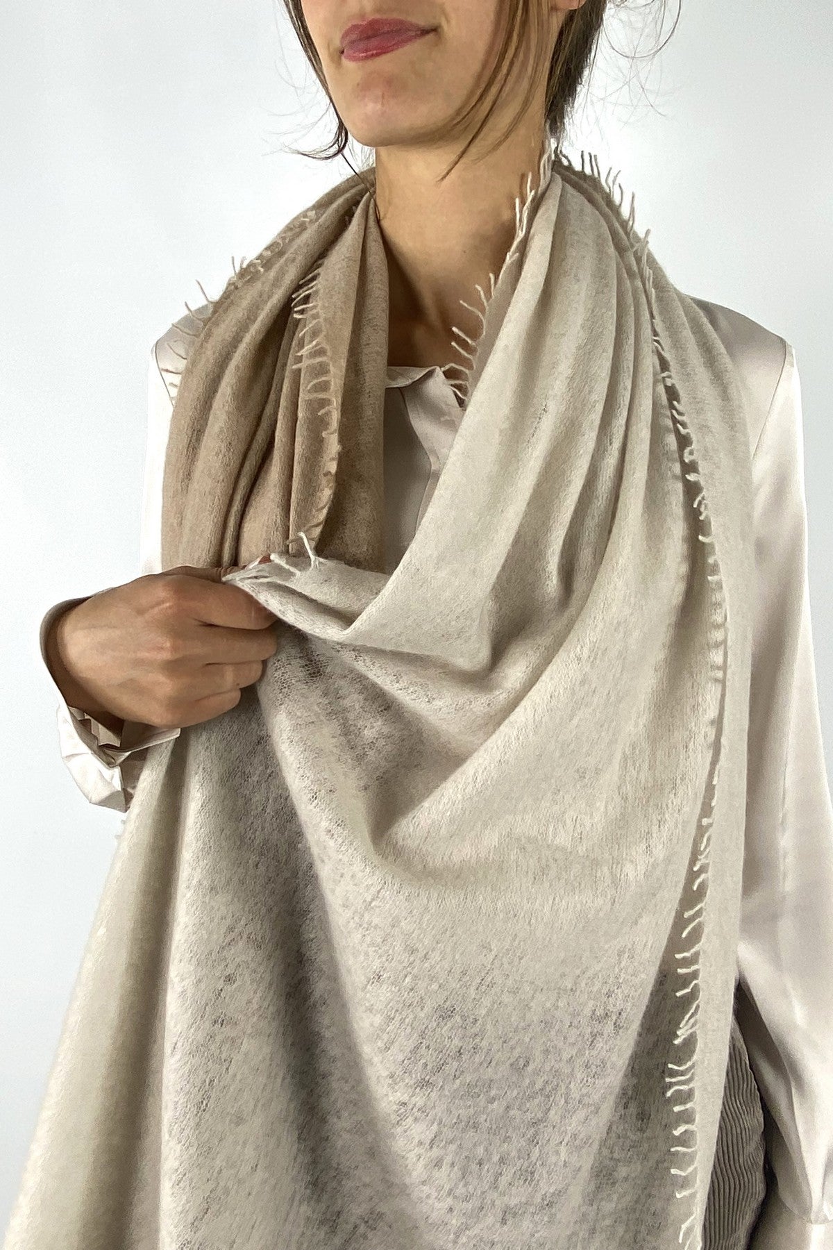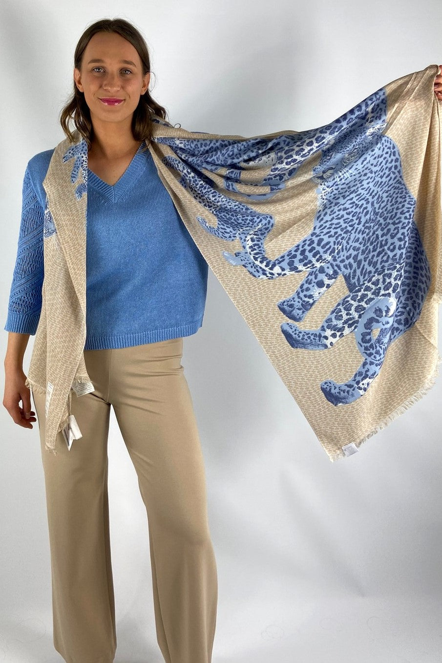 Sjaal in beige/blauwe tinten in een aangename cashmere/wolmix.