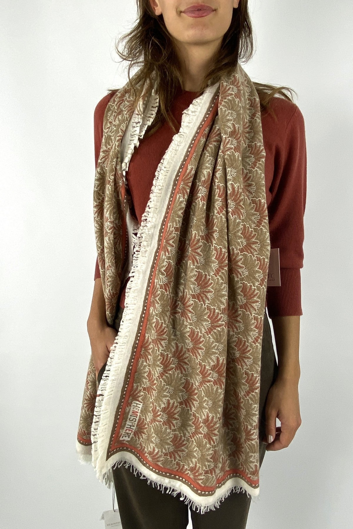 Sjaal van Hemiphsere in roest-bruine dessin met franjes in een zachte wol cashmere.