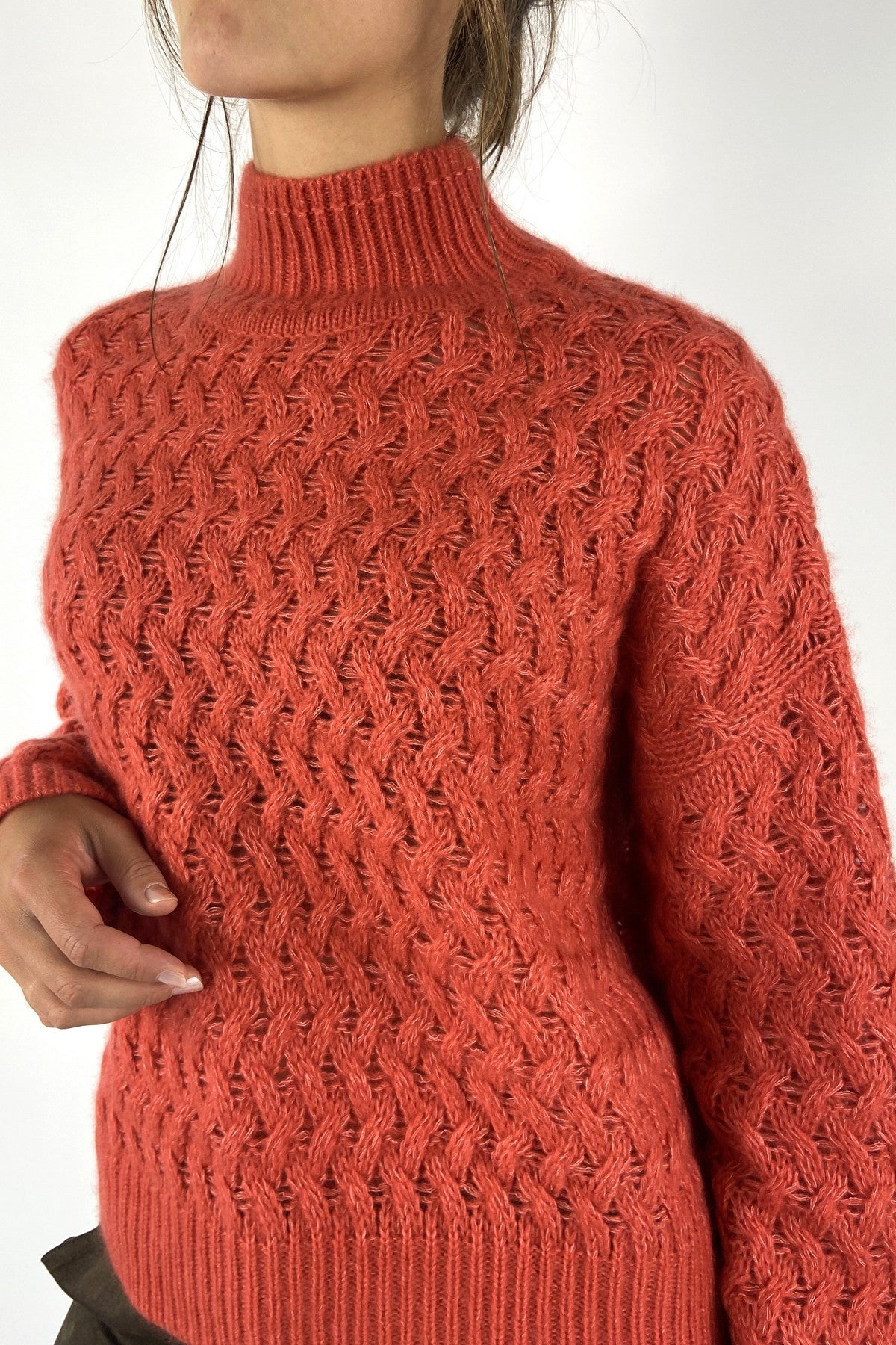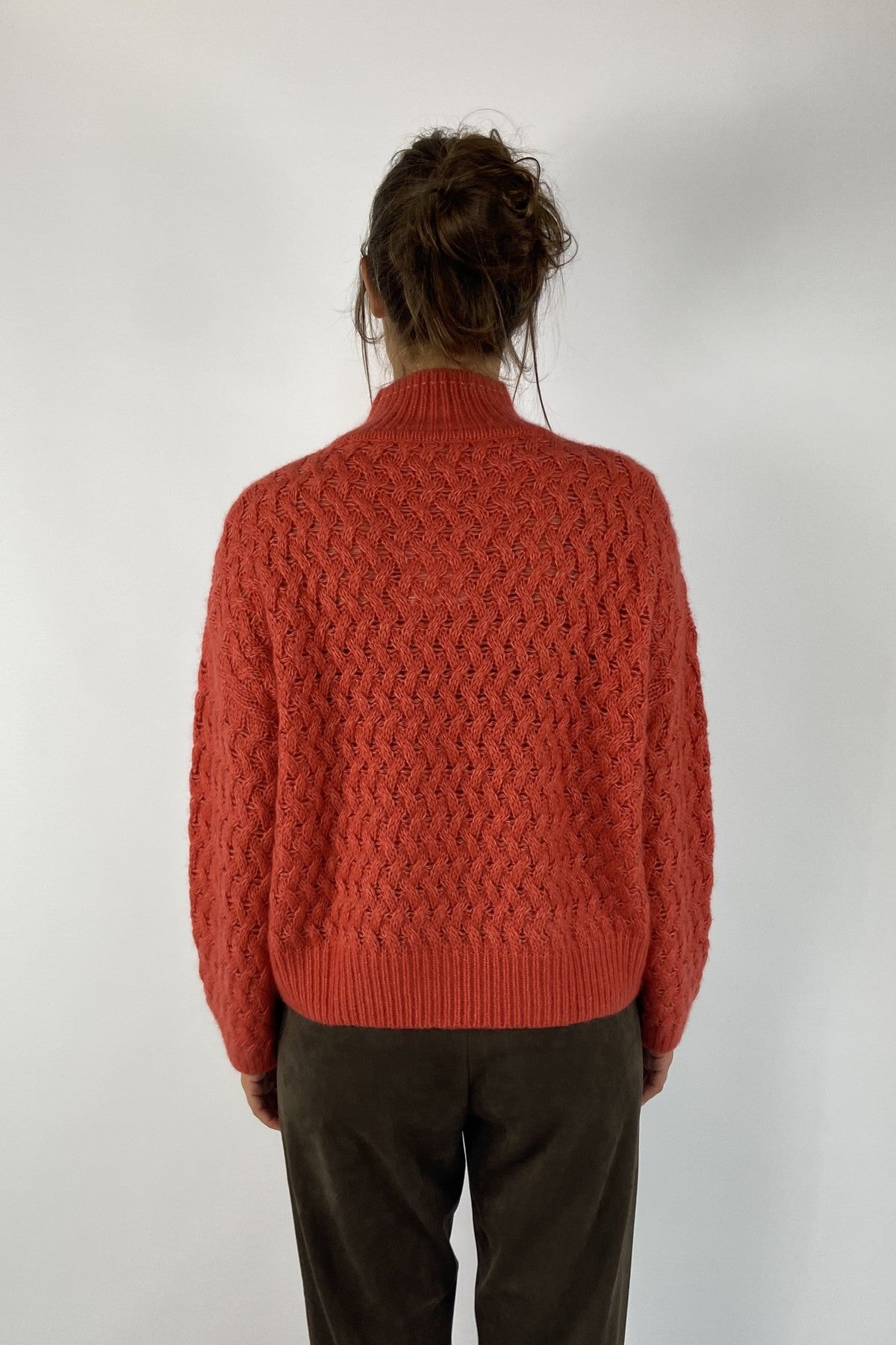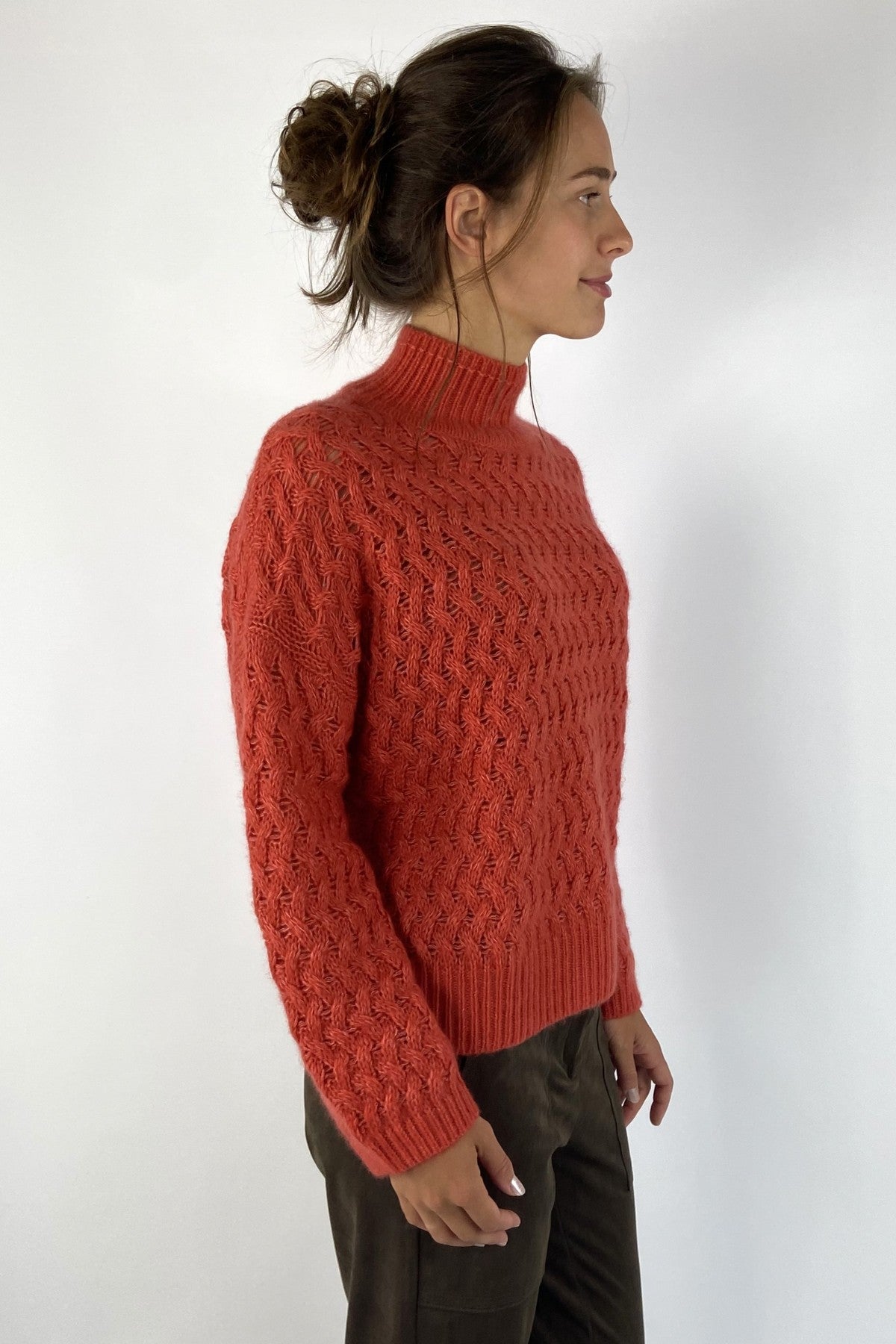 Pull met opstaande kraag van Hemisphere met kabelpatroon in pompoen kleur.
