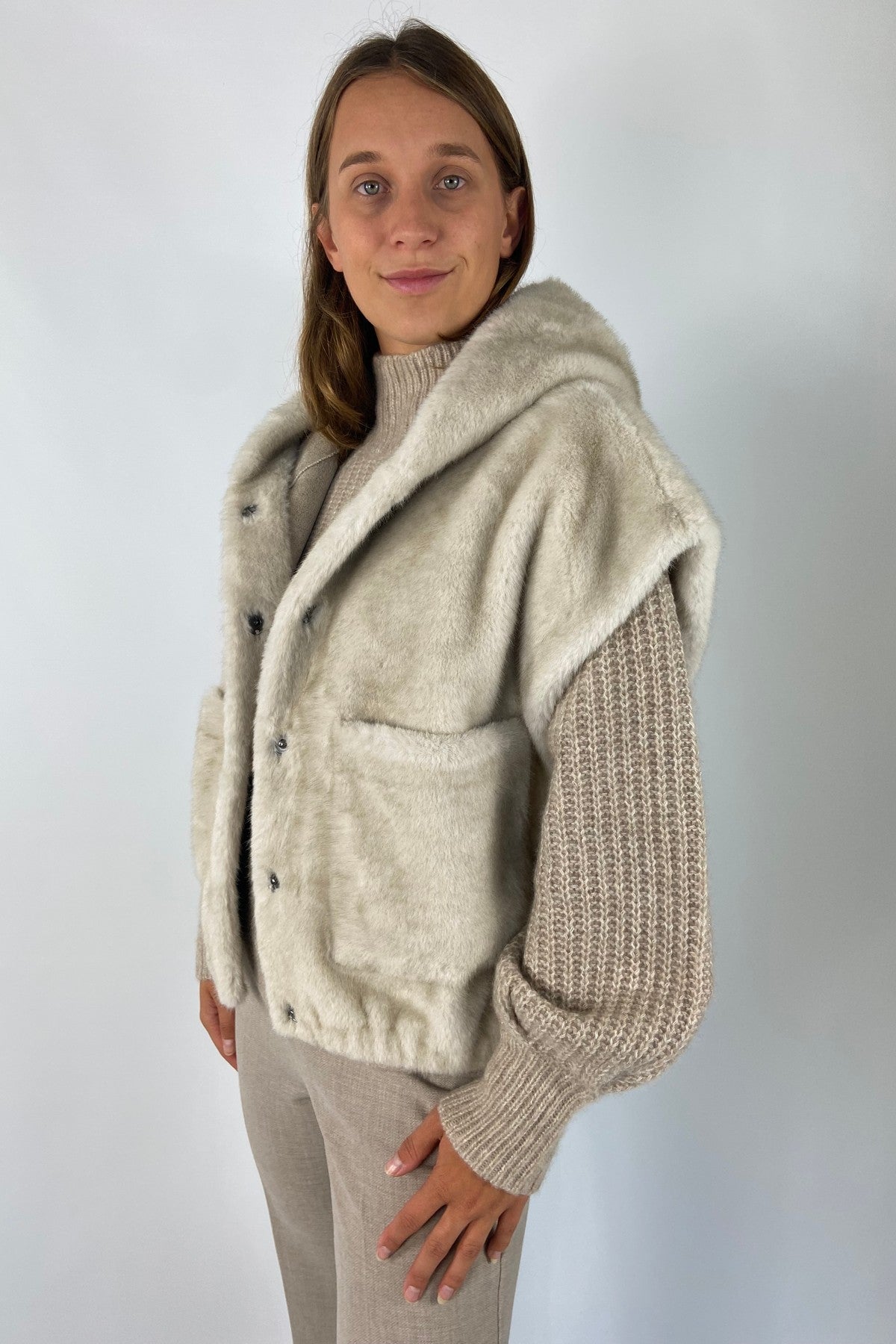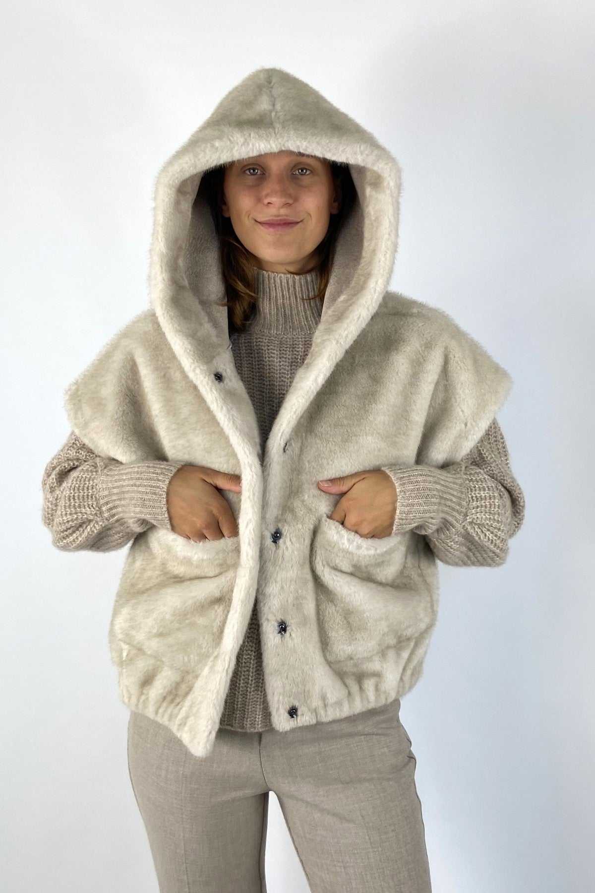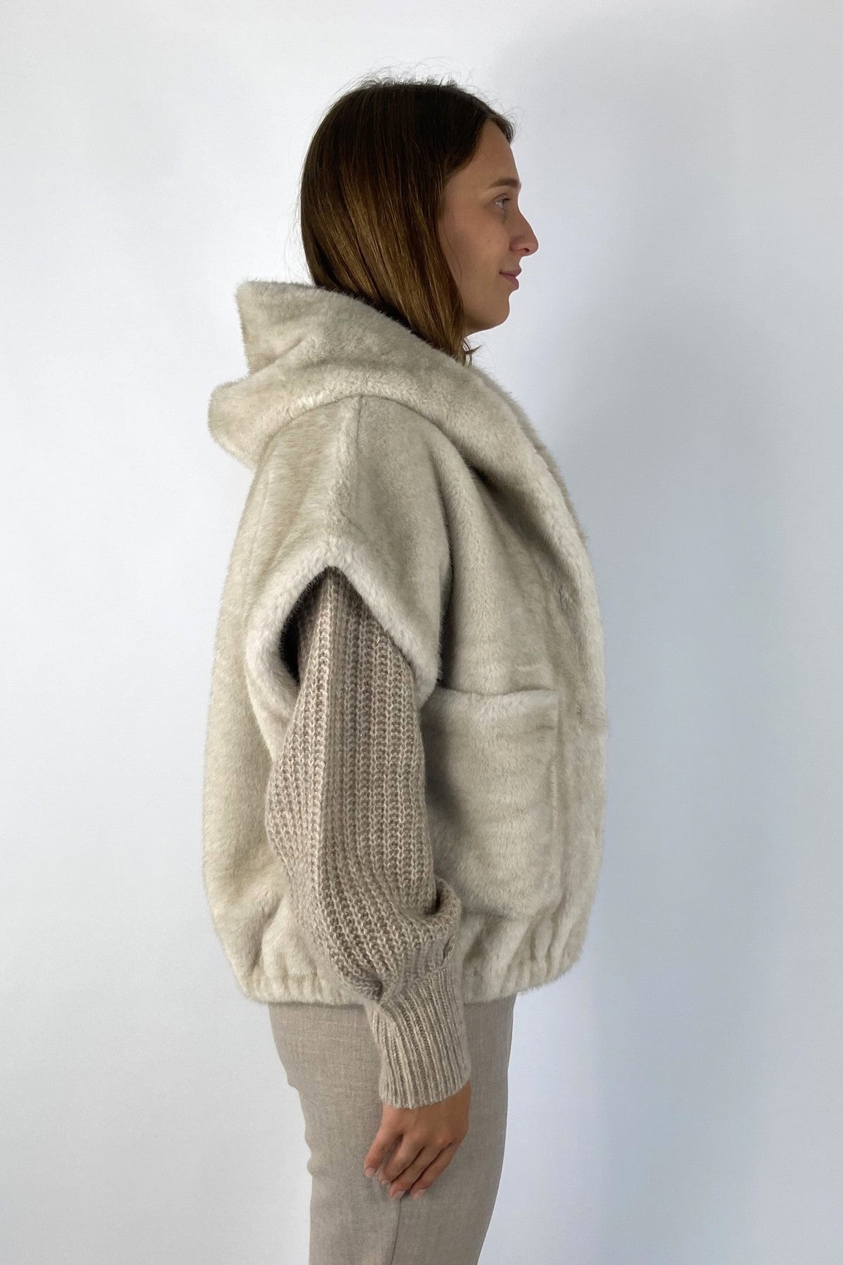 Anthracietkleurig uxueus kort vestje in alpaca mix.