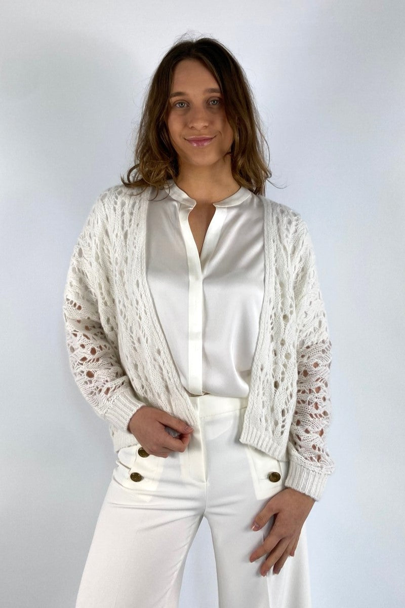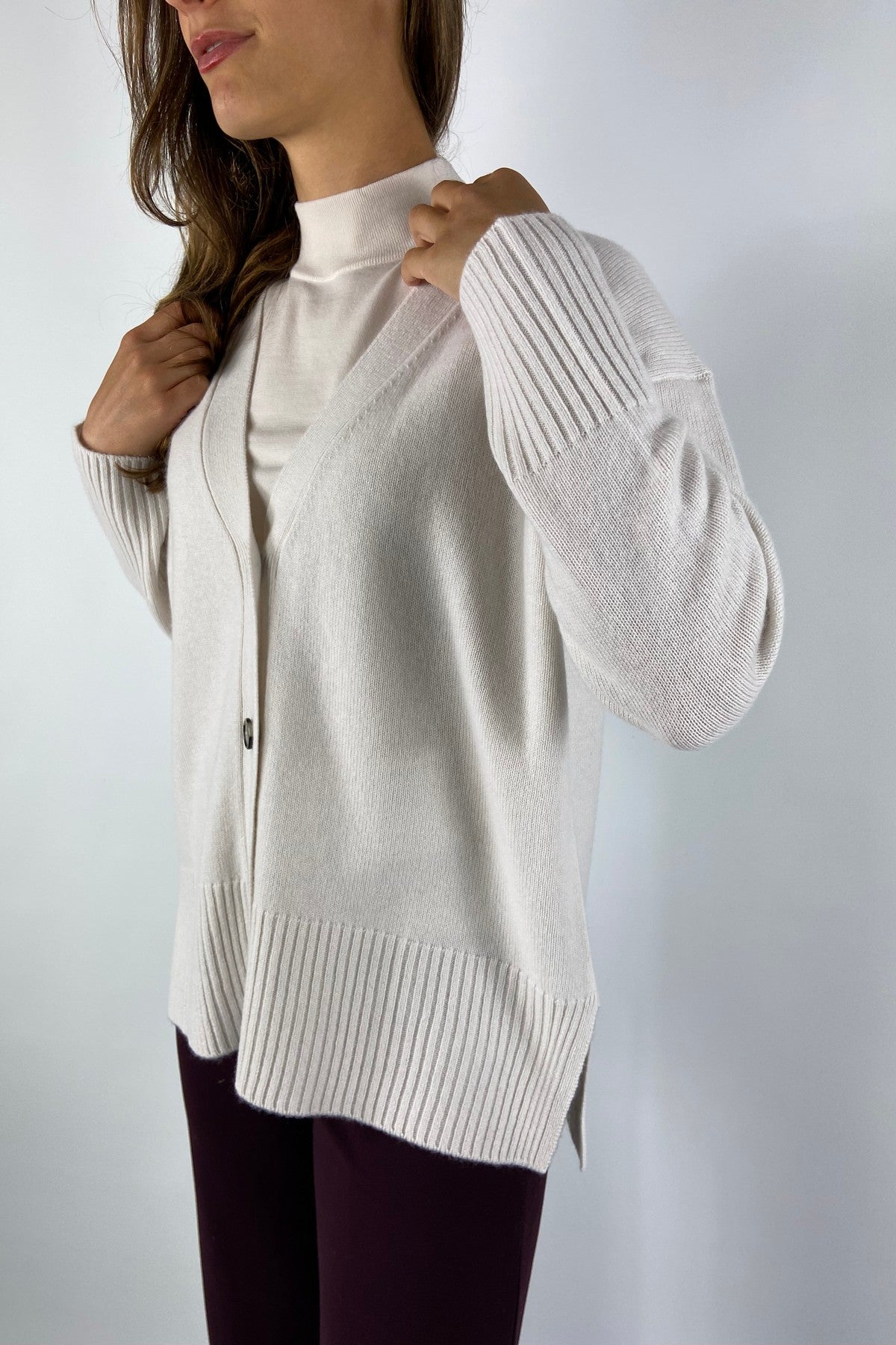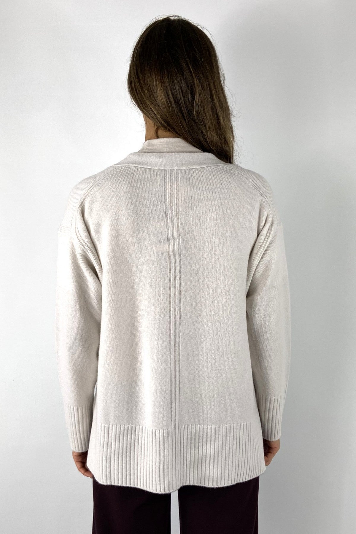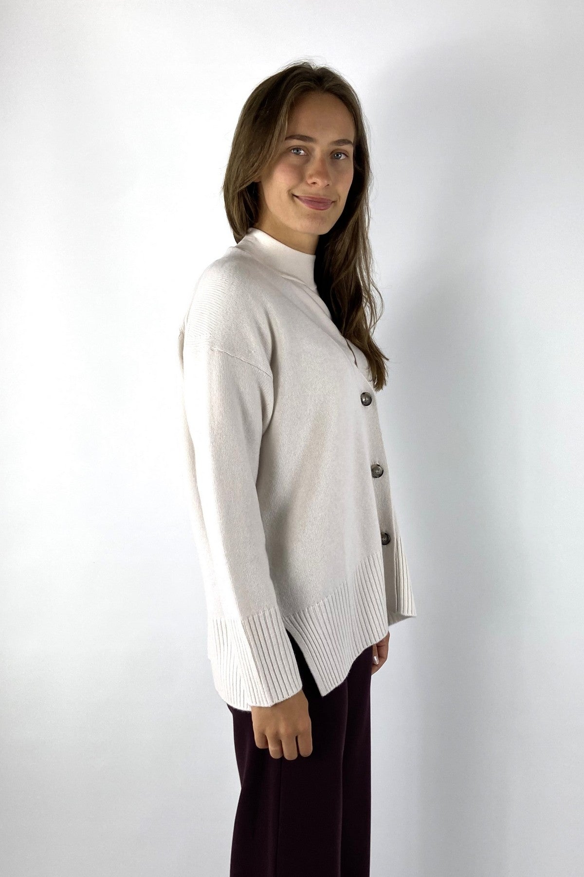 Lange cardigan in gebroken wit van Hemisphere met knopen en V-halslijn in een zachte wol/cashmere brei.