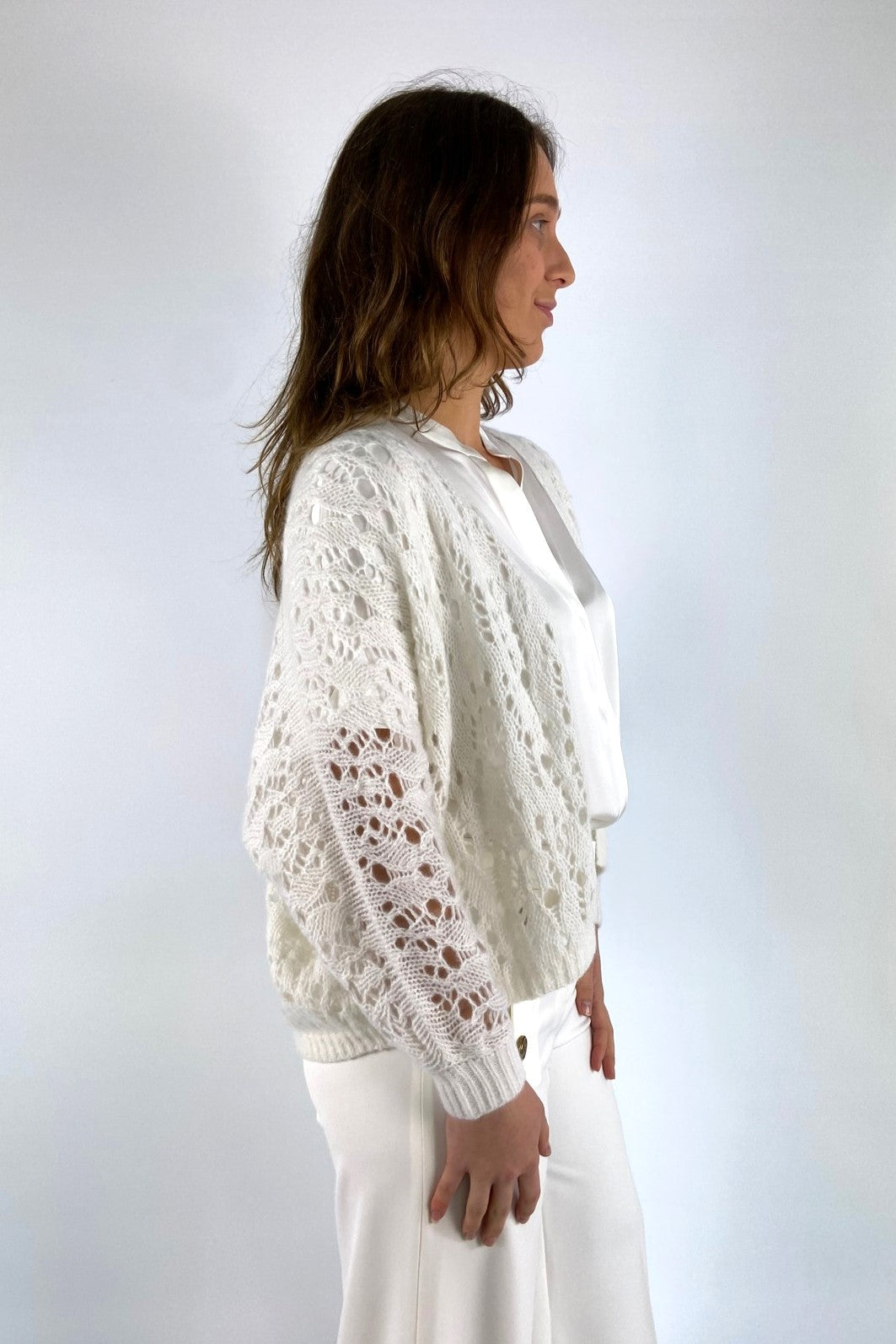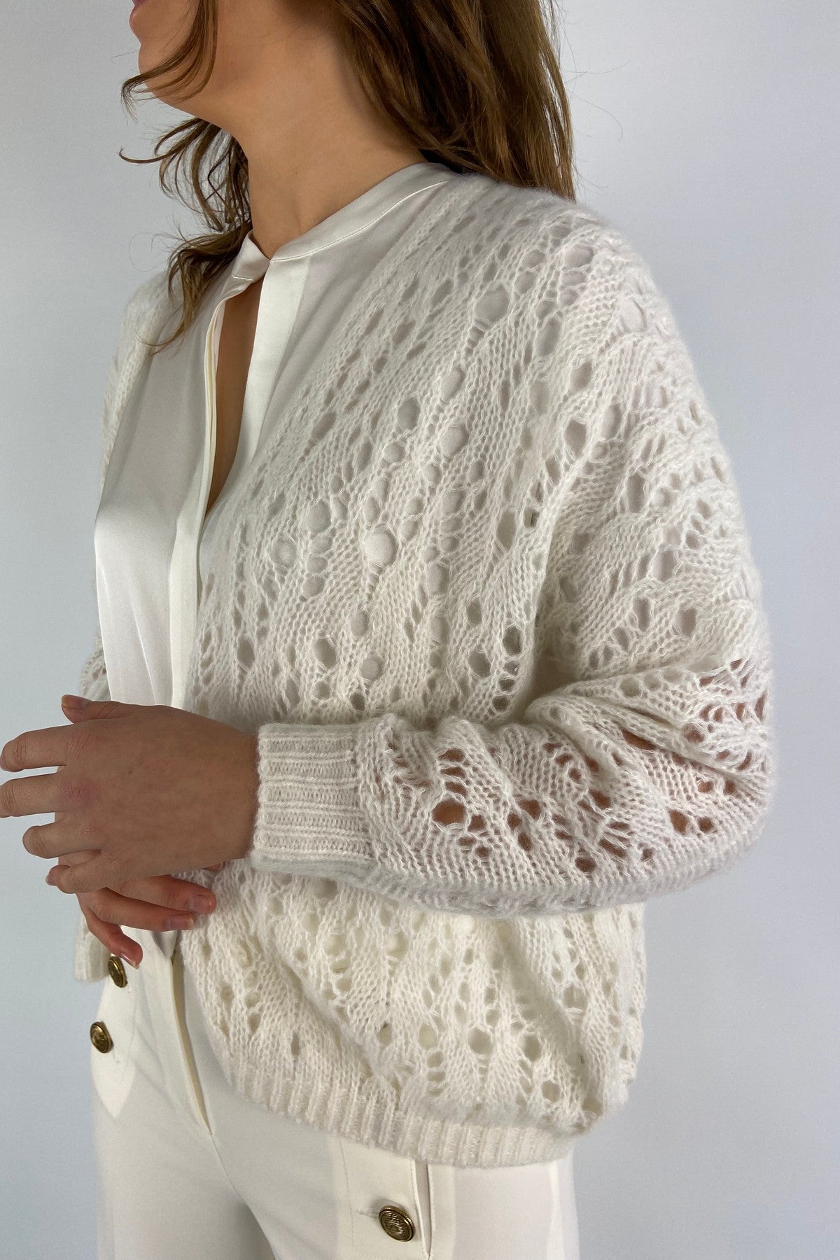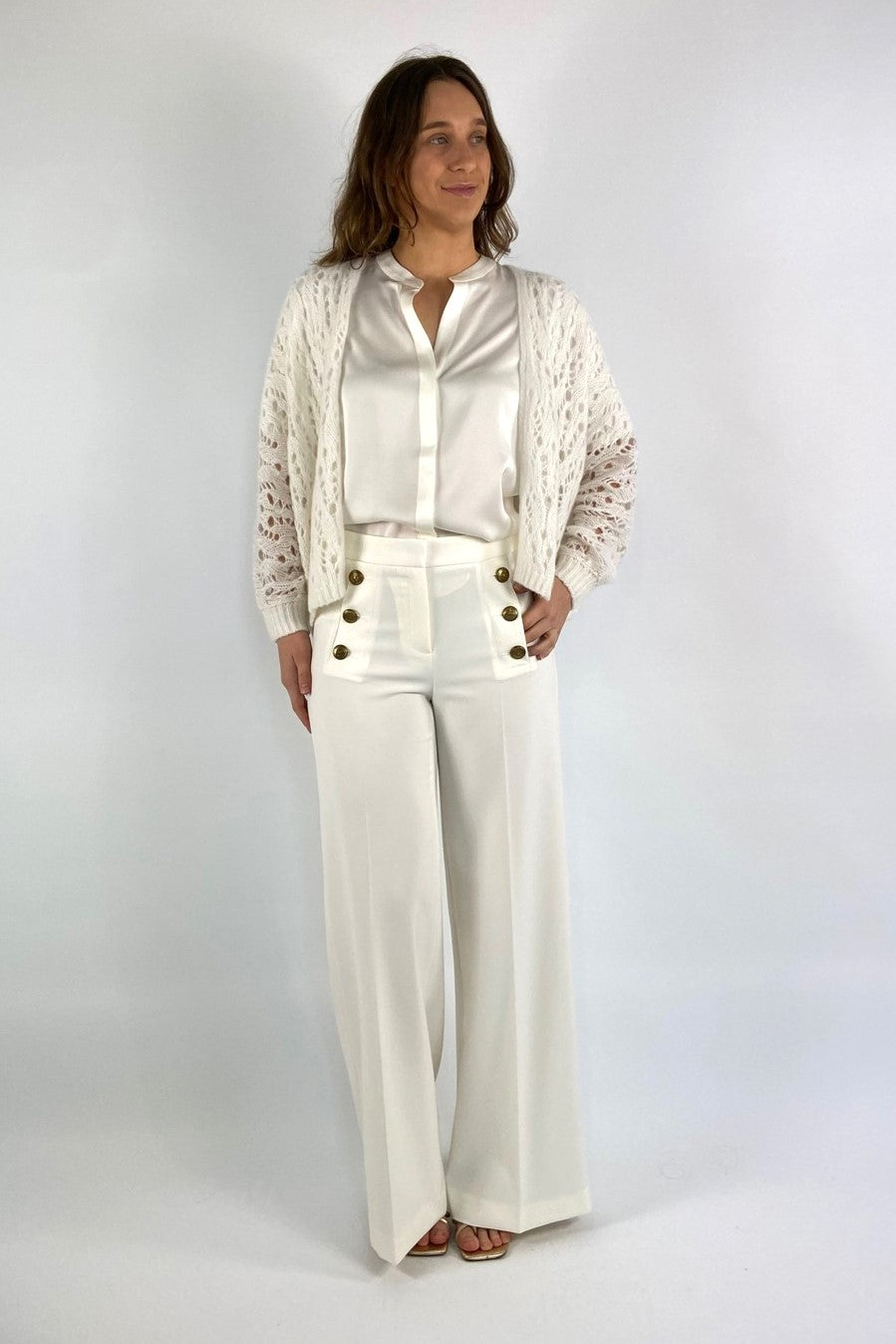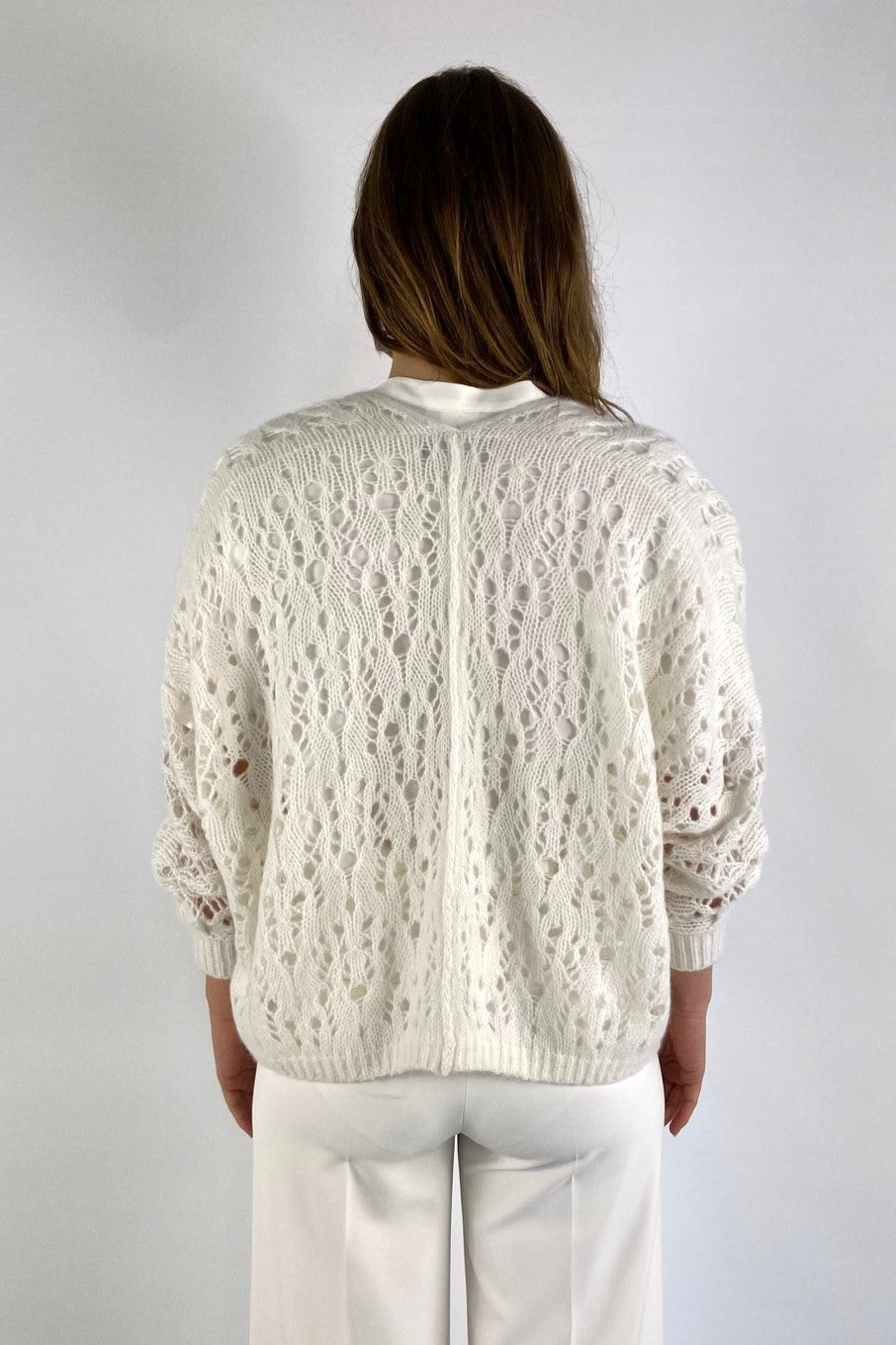 Lange cardigan in gebroken wit van Hemisphere met knopen en V-halslijn in een zachte wol/cashmere brei.