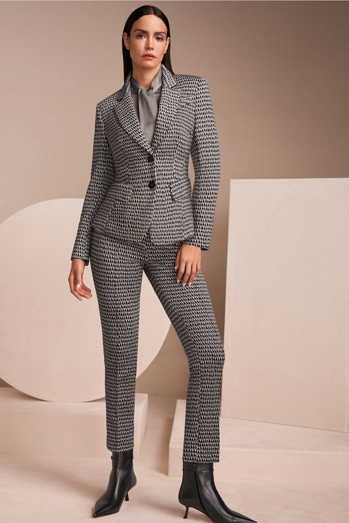 Broek FAID van Marccain met pepita-patroon, hoge taille en licht uitlopende pijpen voor een flatterend silhouet