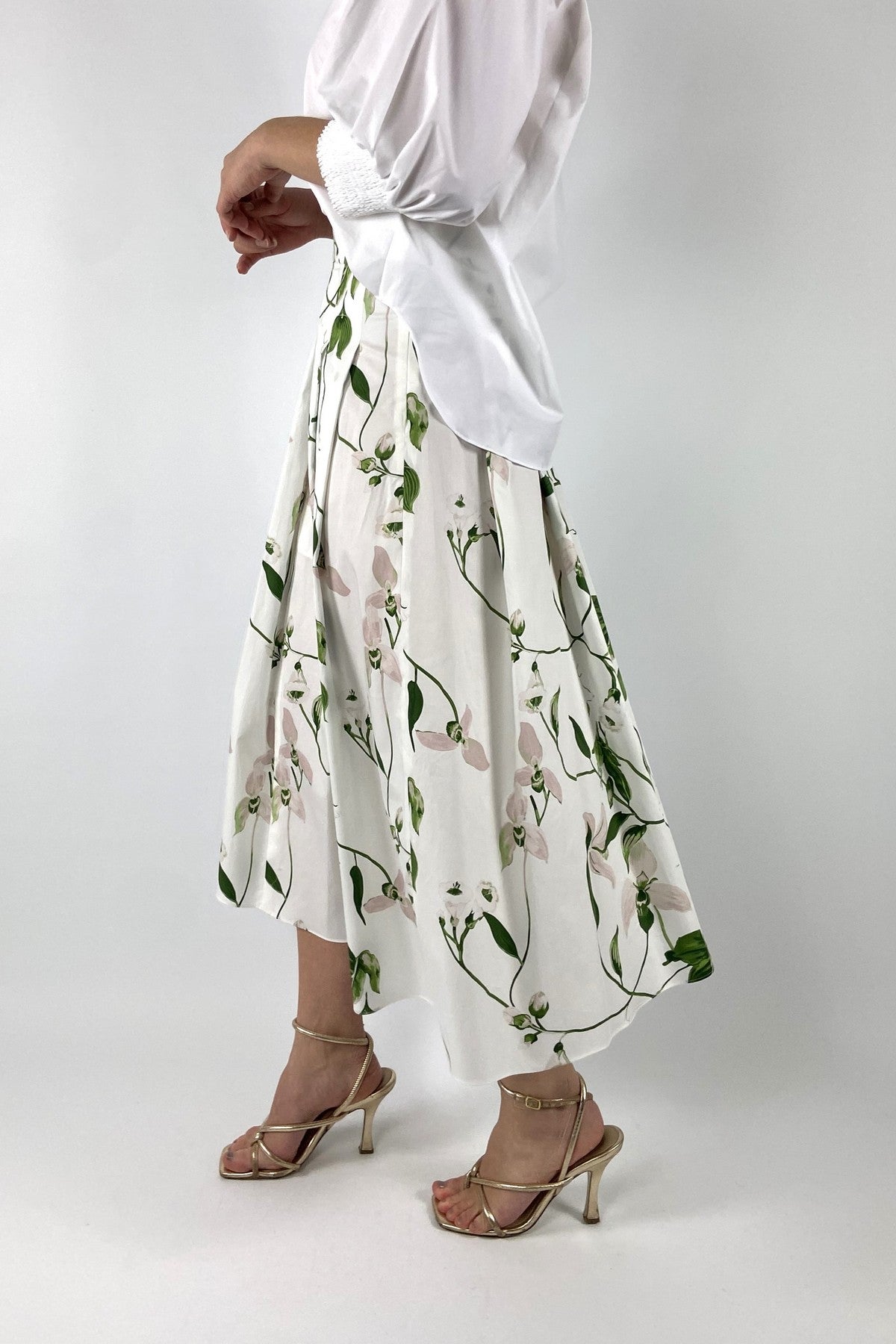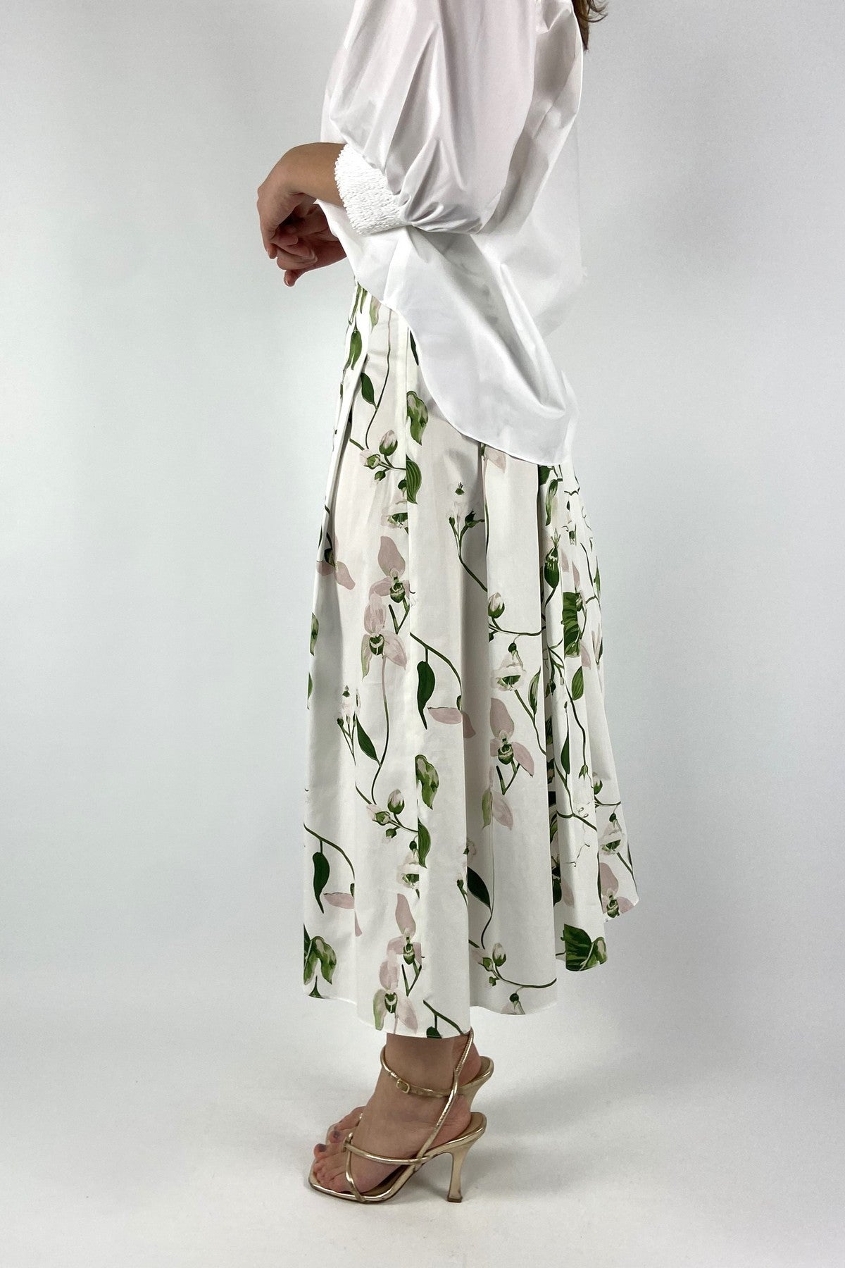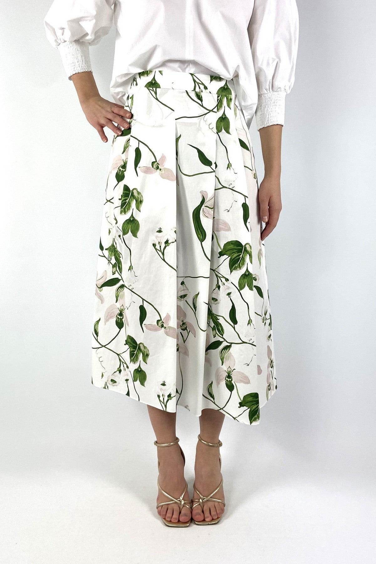 Wit-groene katoenen Epi rok van Natan voorzien van een gedetailleerde irisbloemenprint en elegante plooien voor extra volume.
