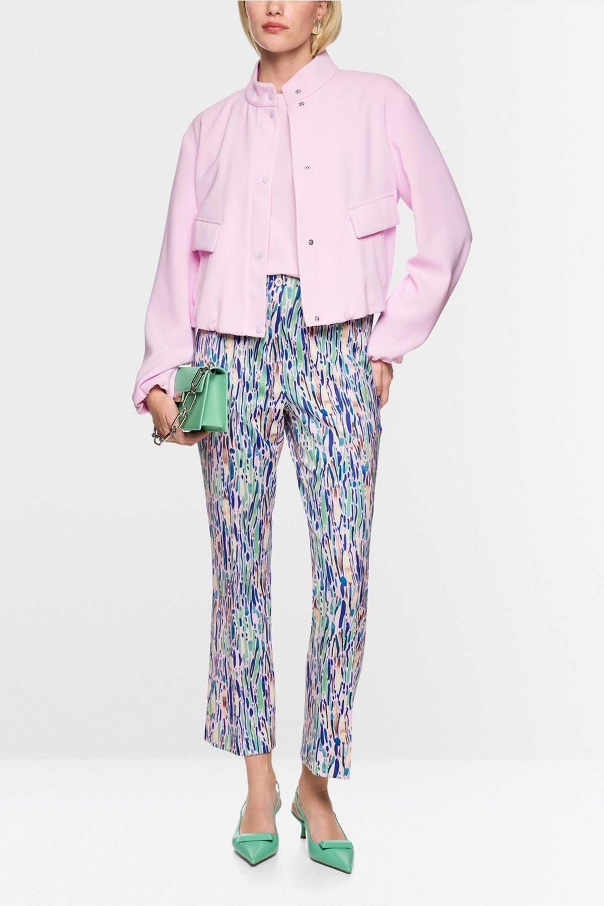 Marc Cain Collections broek FORLI in bright jade met moderne confettiprint.