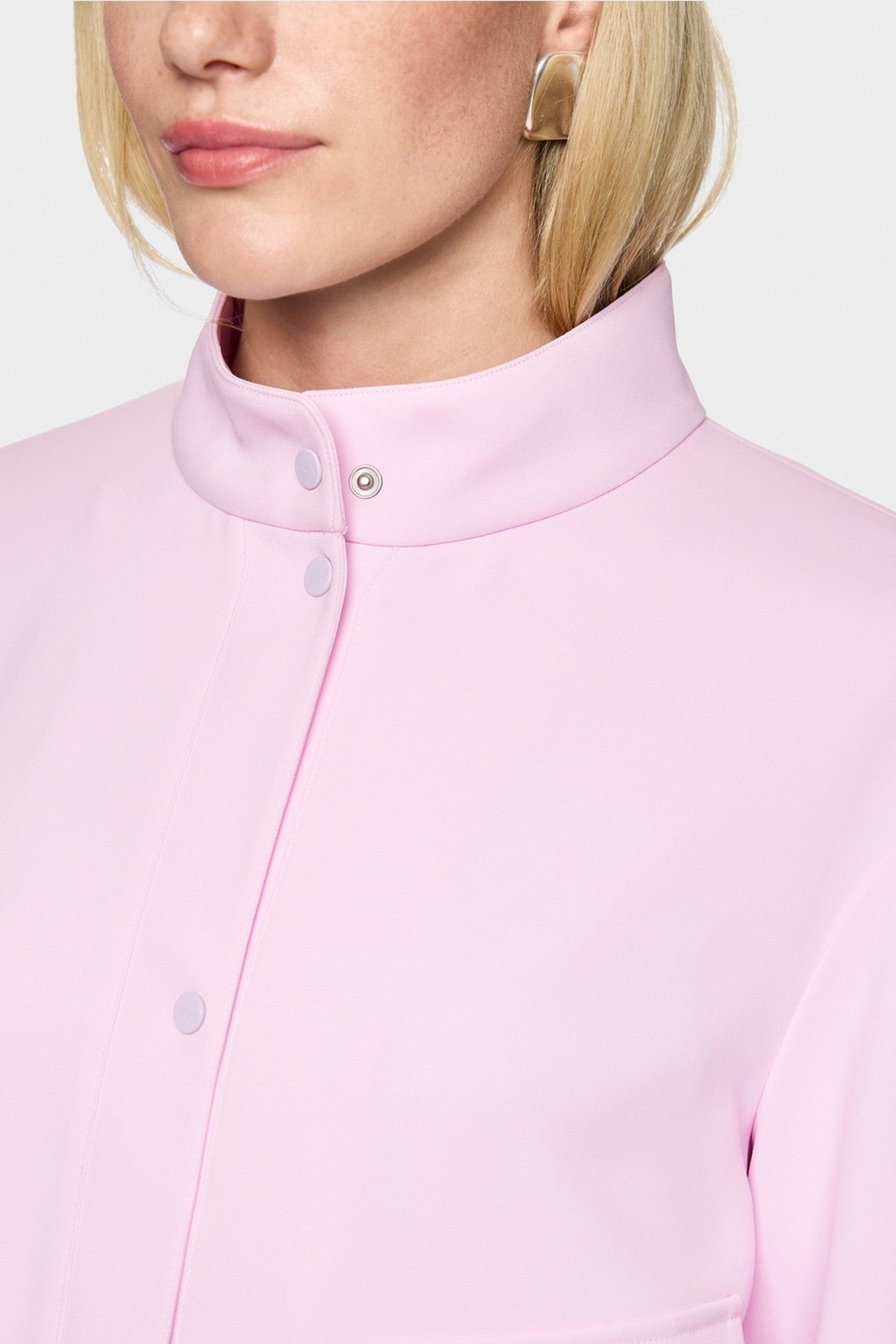 Marc Cain Collections licht jasje in pink tulle met opstaande kraag en boxy pasvorm.