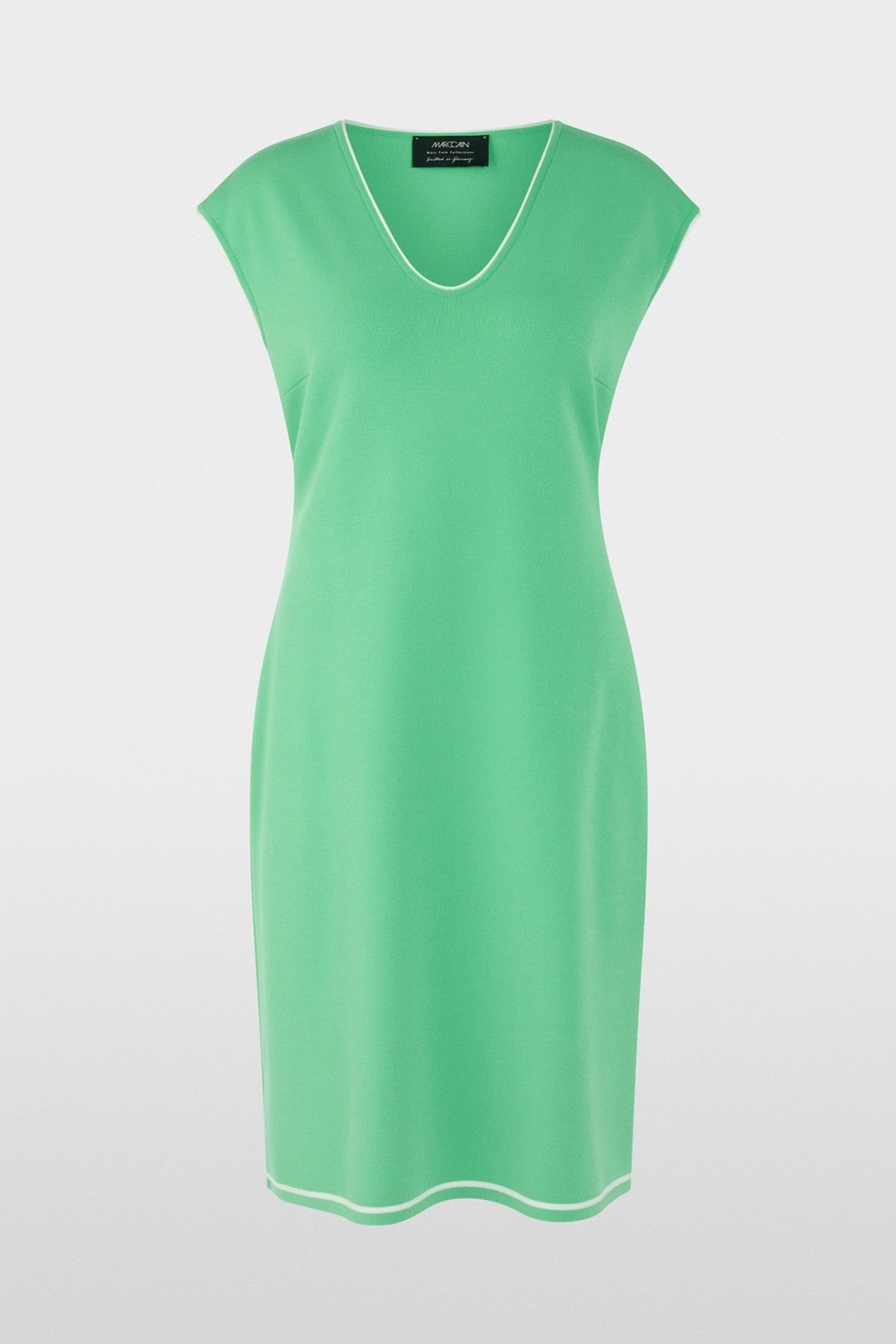 Marc Cain Collections fijn gebreide jurk in bright jade groen met V-hals.