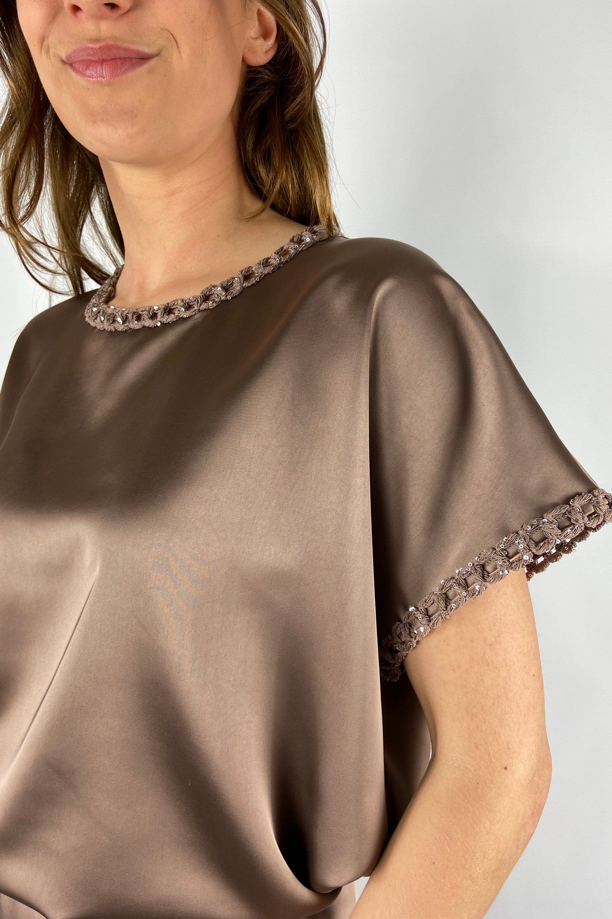 Ein Shirt ist weit mehr als nur ein Basic. Bei Nuance in Eeklo suchen wir gezielt nach Oberteilen, die durch kleine, feine Unterschiede bestechen. Ob es sich um ein fein gestricktes Truitje (Feinstrick-Top), ein Shirt mit hochwertiger Paspelierung oder Modelle mit dezenten Metallic-Effekten handelt – die Qualität der Stoffe steht immer an erster Stelle. Wir setzen auf weiche Viskose, atmungsaktive Baumwolle und luxuriöse Mischgewebe, die auch nach häufigem Tragen ihre Form behalten.