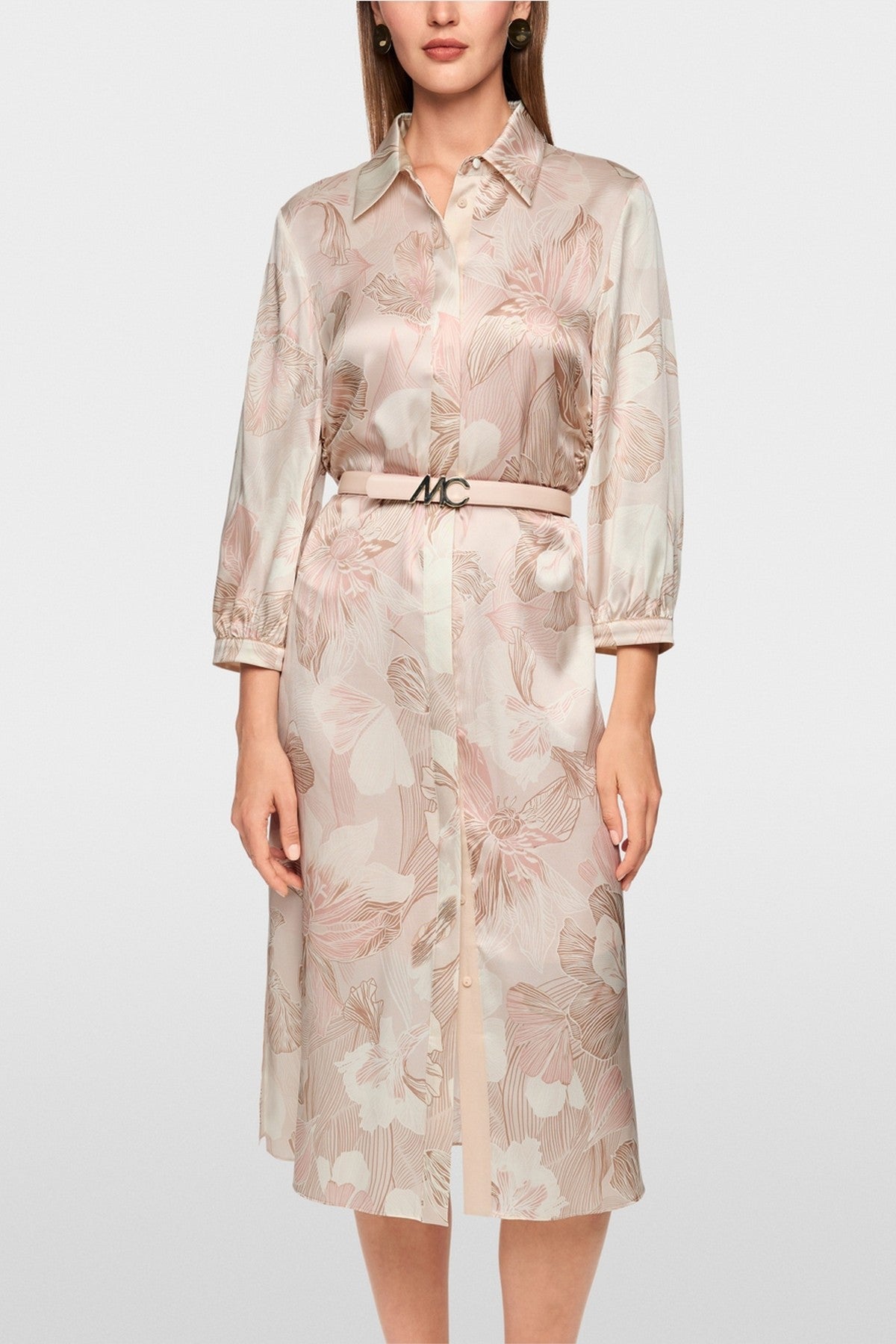 Zijden jurk van Marccain met zachte touch, losse snit, subtiele plooitjes en wijde mouwen met manchetten